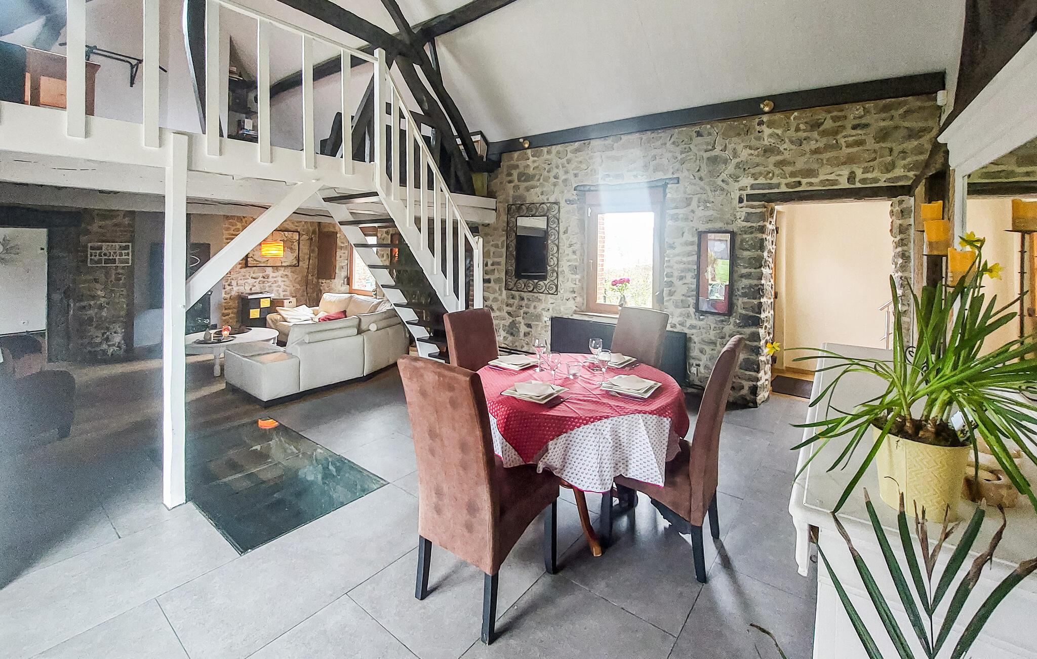 Dette hus er noget særligt med sin varme atmosfære med naturstensvægge, synlige træbjælker og rummelige, åbne værelser. Slap af i den komfortable sofa, lyt til musik eller en engagerende podcast og nyd afslappende timer i stilfulde omgivelser. Tilbered lækre måltider sammen i køkkenet, og afslut dagen med en god samtale omkring det store spisebord.