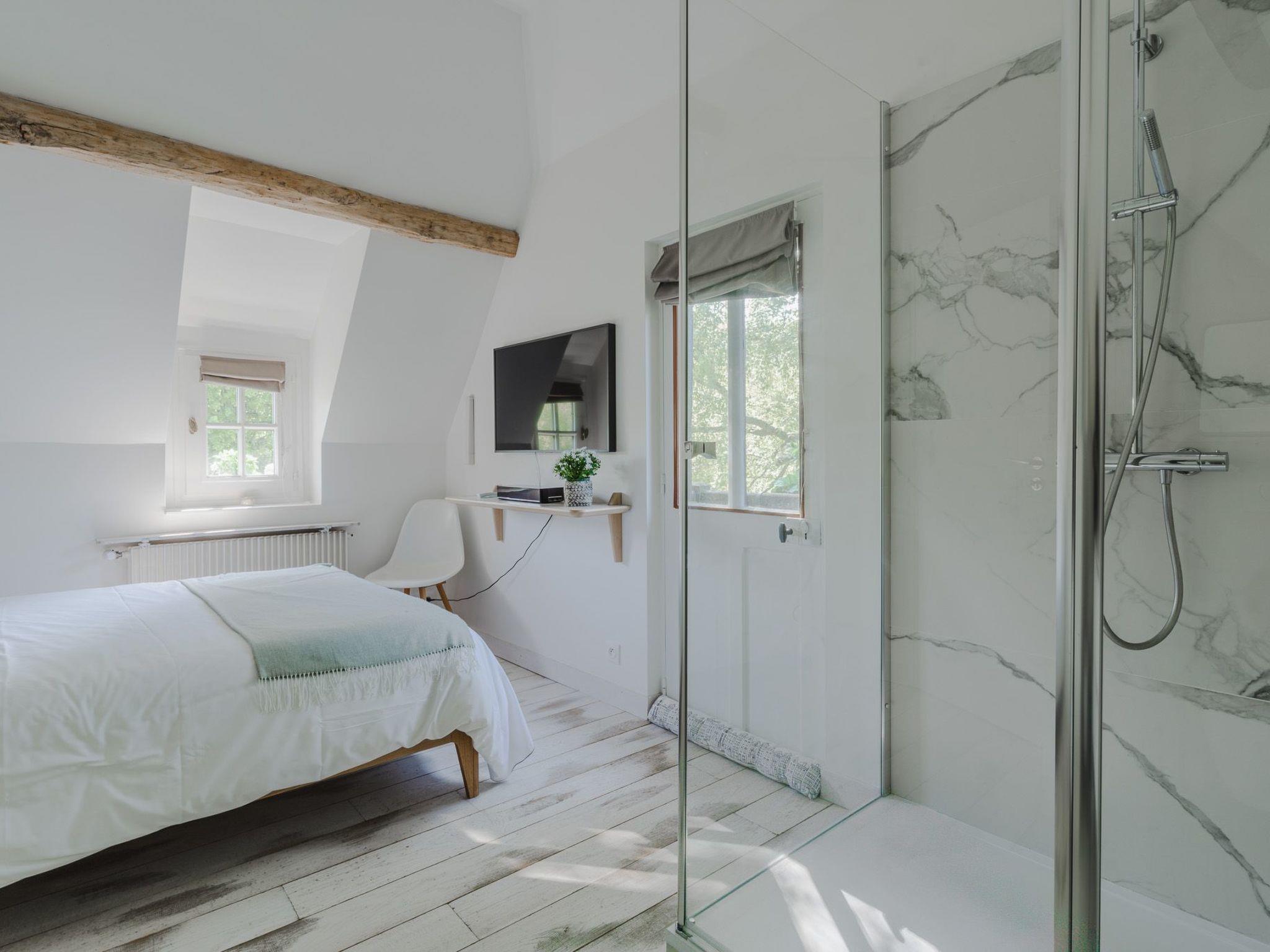 A 20m2 bedroom with 1 double bed, shower room and toilet