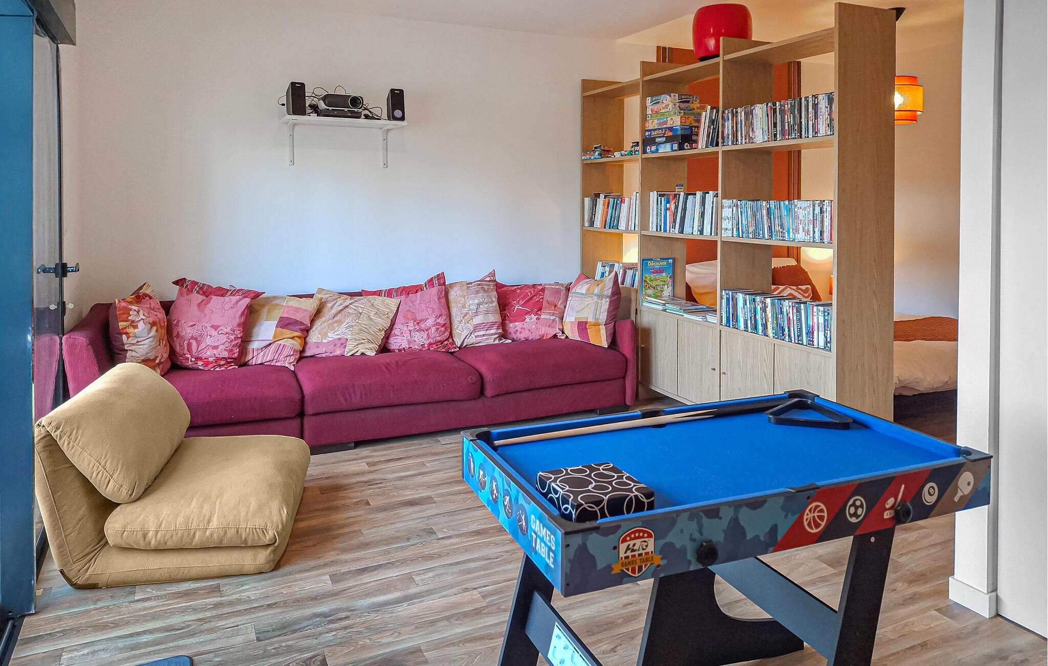 Beliggende i hjertet af et naturreservat og kun en kort gåtur fra stranden, byder dette moderne og komfortable feriehus jer velkommen. Gør det behageligt i det smagfuldt møblerede interiør, tryll kulinariske lækkerier frem sammen, glæd jer til hyggelige måltider ved spisebordet, projicer gamle fotos på skærmen eller fordyb jer i en god bog i jeres yndlingshjørne.