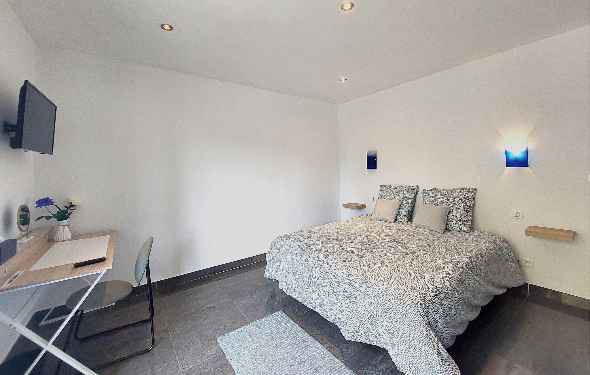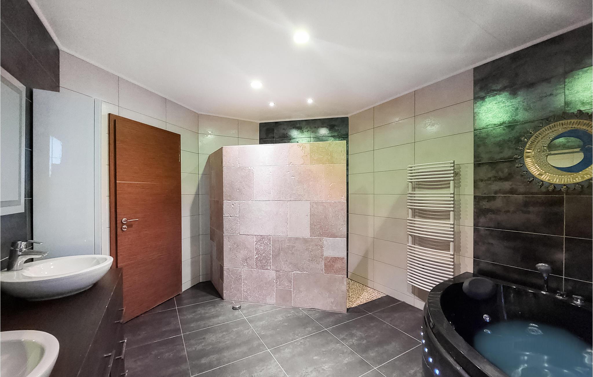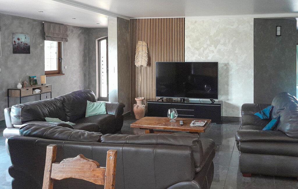 Glæd jer til en afslappende ferie på landet, hvor I kan nyde roen og den høje komfort i denne bolig med opvarmet indendørs pool året rundt. Den flotte villa byder jer velkommen i en stor park med træer. I det attraktive hus kommer I ikke til at mangle noget, og efter et par baner i poolen kan I slappe af i stuerne. Her er der masser af plads! Hyg jer udenfor med petanque, bordtennis og badminton.