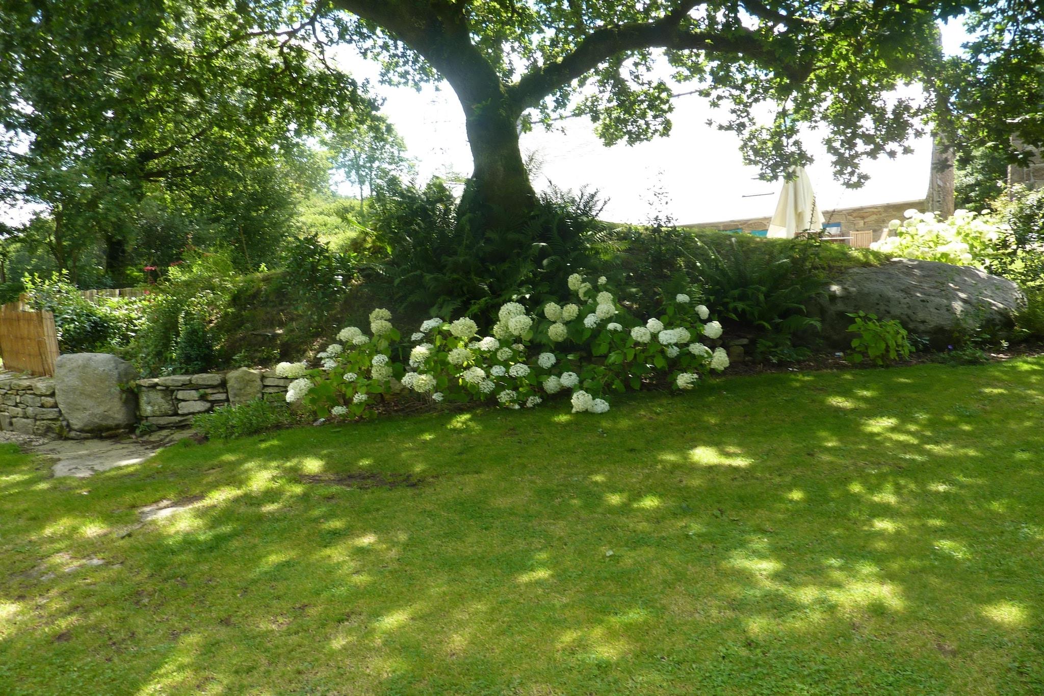 Dette fritliggende sommerhus fra det 17. århundrede ligger mellem stranden og Monts d'Arrée, som er et typisk bretonsk hus med et fuldt moderniseret interiør med typiske bretonske accenter. Du vil straks føle dig hjemme i dette hyggelige hjem. I den rummelige have og dens charmerende terrasse kan du nyde de rolige og grønne omgivelser. I hjertet af Bretagne ligger det uspolerede og beskyttede område af Monts d 'Arrée med Roc' h Ruz som den højeste top (385 meter), en sten s kaste væk fra sognbyerne, skulpturerne og de smukke kapeller, der bestemt er et besøg værd Ideelt til cyklister og vandrere, fordi du er i skoven Huelgoat, kendt for klipperne med særlige former og menhirer, steder med mystiske Navne der henviser til King Arthur, for eksempel. På 1 times kørsel kan du besøge byen Morlaix (29 km) med de smukke bindingsværkshuse. Små, stejle gyder, med en lejlighedsvis trappetrin, findes i kanterne af den gamle bydel. En gang i toppen har du en smuk udsigt over byen. Den nærmeste strand ligger ved Carantec (40 km).