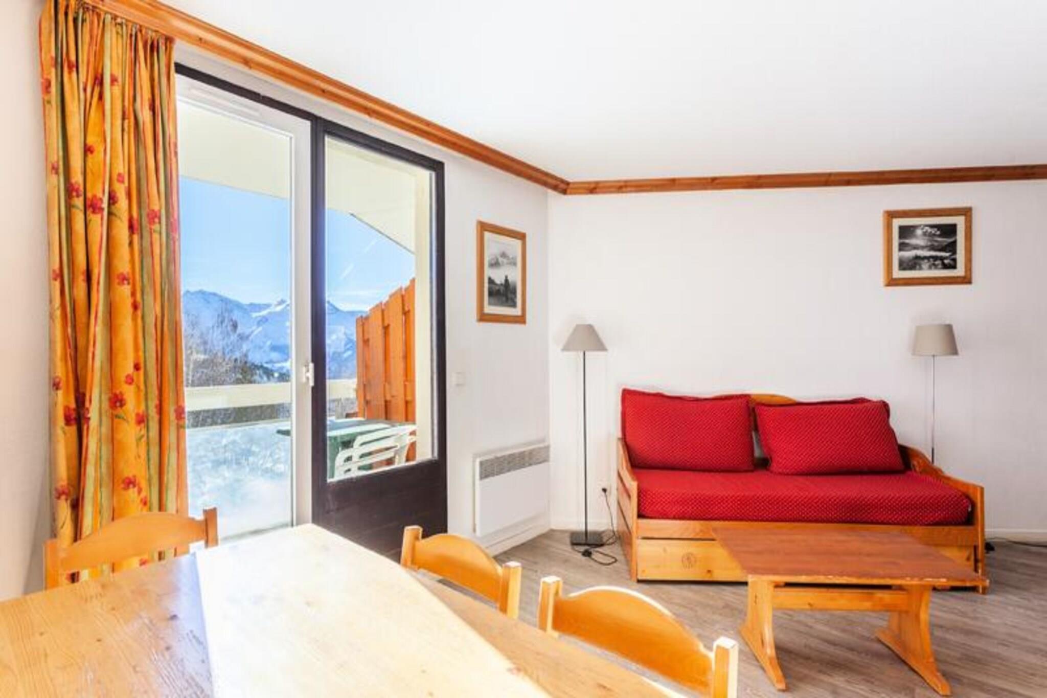Denne rummelige lejlighed i Alpe d'Huez tilbyder et behageligt ophold for familier eller små grupper med plads til op til 6 personer. Den har 2 sovesofaer, 2 udtrækssenge og et kabineområde med 2 enkeltsenge. Ejendommen er kæledyrsvenlig med forudgående tilladelse og et tillægsgebyr. Lejligheden har også en balkon med bjergudsigt med siddepladser, et skiskab og et fjernsyn til underholdning. Sengelinned og håndklæder er tilgængelige mod et tillægsgebyr, og slutrengøring er obligatorisk, og daglig rengøring er tilgængelig mod et ekstra gebyr. Boligen er ideelt placeret mindre end 100 meter fra indkøbscentret, hvilket gør det nemt at få adgang til lokale caféer, markeder og butikker. Det solrige feriested Grand Domaine Ski tilbyder en række aktiviteter, herunder vandreture og nyde en fantastisk udsigt over Oisans-massivet. Mærket Famille Plus, området er perfekt til familieferier, med masser af attraktioner og muligheder for at udforske de omkringliggende bjerge. Boligen har også en udendørs opvarmet swimmingpool, åben om eftermiddagen, samt en bar til afslapning. Lejligheden har et fuldt udstyret køkkenområde åbent til stuen, ideel til at tilberede måltider under dit ophold. Badeværelset er komplet med badekar, og der er et separat toilet for ekstra bekvemmelighed. Yderligere faciliteter omfatter en hårtørrer, pengeskab og et afslapningsområde med sauna (mod betaling). Parkering er tilgængelig på nærliggende gratis offentlige udendørs parkeringspladser eller en overdækket parkeringsplads mod betaling.