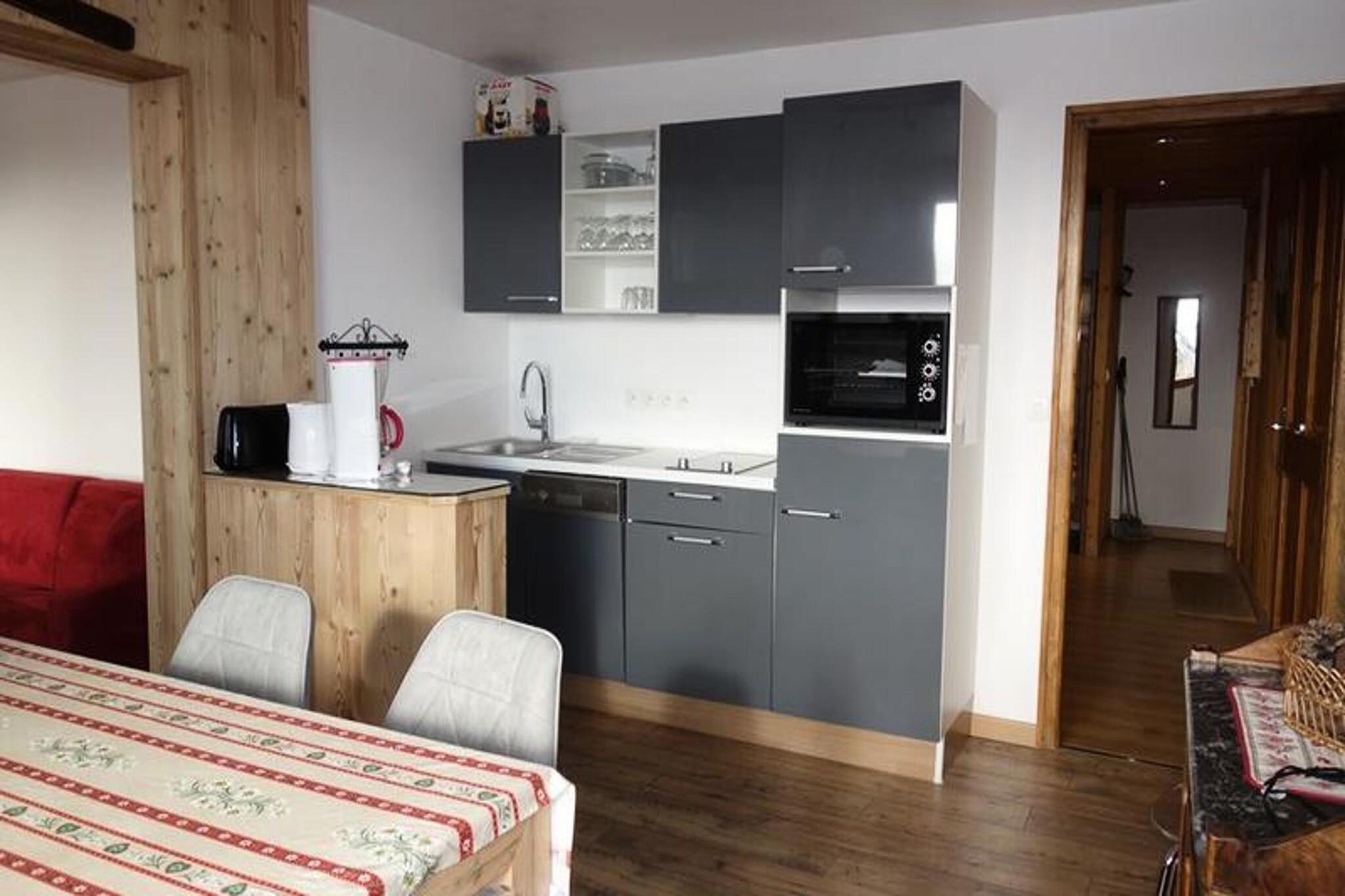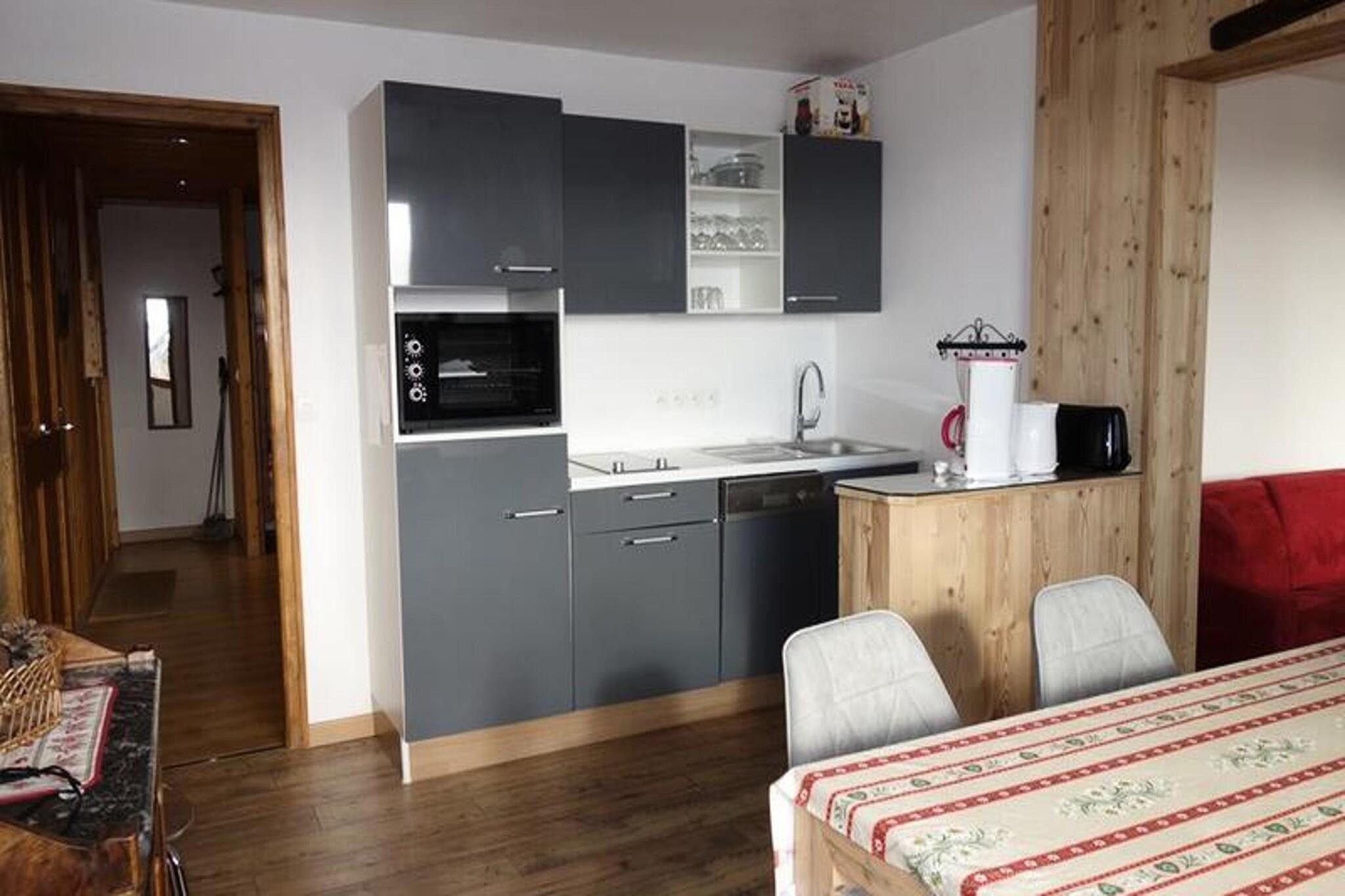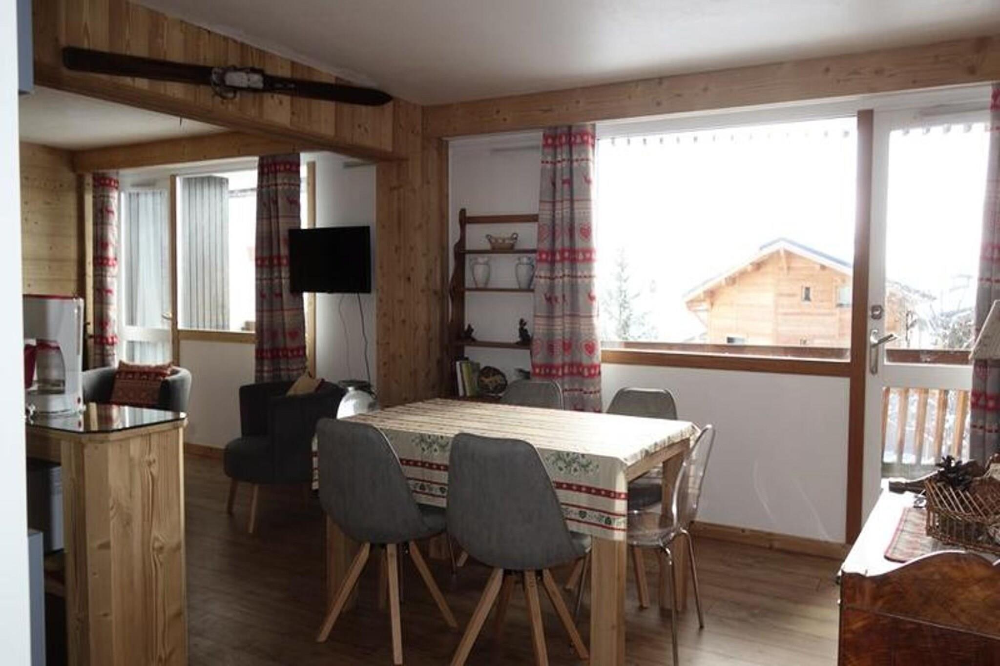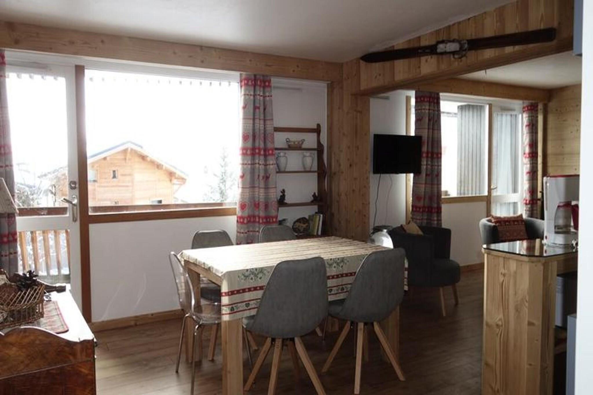 Denne rummelige lejlighed på 61 m² tilbyder et varmt og indbydende ophold for familier eller grupper. Beliggende på første sal med en sydvendt balkon, kan det rumme op til otte gæster komfortabelt. Den beboelige hall og bjerghjørnet har hver køjesenge, mens soveværelsesområdet byder på en dobbeltseng for ekstra privatliv. I stuen er der en hyggelig sofa og et tv til afslapning efter en dag på pisterne. Skientusiaster vil sætte pris på bekvemmeligheden ved et skiskab, og parkering er tilgængelig på boligens parkeringsplads eller langs Avenue Rif Nel. Bemærk venligst, at kæledyr ikke er tilladt. Beliggende ved foden af ??pisterne har lejligheden en uovertruffen beliggenhed for udendørs aktiviteter og udforskning. En kort gåtur bringer dig til livlige caféer, restauranter og lokale markeder, perfekt til at prøve regionale delikatesser eller hente væsentlige ting. Det nærliggende resortcenter byder på en række attraktioner, mens pisterne og bjergstierne giver uendelige muligheder for eventyr. Denne placering sikrer en perfekt blanding af afslapning og spænding. Lejligheden er udstyret med praktiske faciliteter til at forbedre dit ophold. Køkkenet har ovn, mikroovn, keramiske kogeplader og opvaskemaskine, hvilket gør madlavning til en leg. To badeværelser - det ene med badekar og separat toilet, det andet med bruser og toilet - tilbyder ekstra bekvemmelighed. Sengetøj, håndklæder og slutrengøring er ikke inkluderet, så du kan tilpasse din oplevelse.