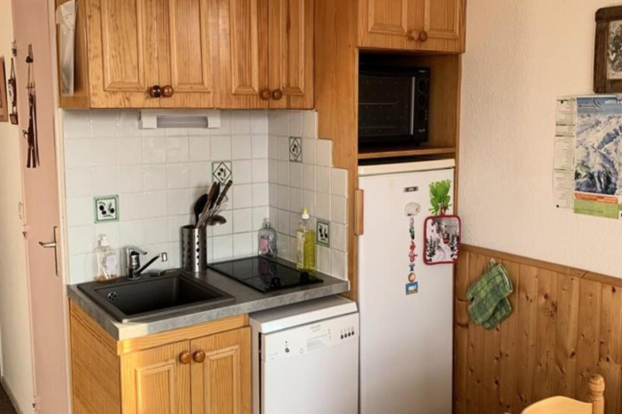 Denne hyggelige 2-værelses, 30 m² store lejlighed på første sal byder på en sydvendt balkon med naturskøn udsigt, perfekt til afslapning efter en dag på pisterne. Den har to bjerghjørner: et med to køjesenge og uden vindue, og et andet med to køjesenge og et vindue, hvilket giver fleksibilitet til familier eller små grupper. Stuen har en sovesofa og et tv for ekstra komfort. Selvom ejendommen er fri for kæledyr, sikrer den en fredelig og familievenlig atmosfære. Sengelinned, håndklæder og slutrengøring er ikke inkluderet i lejen. Bekvemt beliggende kun 50 meter fra ALP EXPRESS Gondola tilbyder lejligheden hurtig adgang til pisterne, hvilket gør den til en perfekt base for skientusiaster. Gratis transport i nærheden giver problemfri transport rundt på feriestedet. Gæsterne kan udforske lokale attraktioner, charmerende caféer og butikker inden for gåafstand og fordybe sig i den pulserende alpine kultur. Lejligheden er udstyret med moderne bekvemmeligheder for at sikre et behageligt ophold. Køkkenområdet omfatter en opvaskemaskine, køleskab, to keramiske kogeplader, en lille elektrisk ovn og en mikrobølgeovn til nem tilberedning af måltider. Badeværelset har et badekar til afslapning, og et separat toilet tilføjer til bekvemmeligheden. Gæsterne drager også fordel af et dedikeret skiskab, der gør opbevaring let og organiseret.