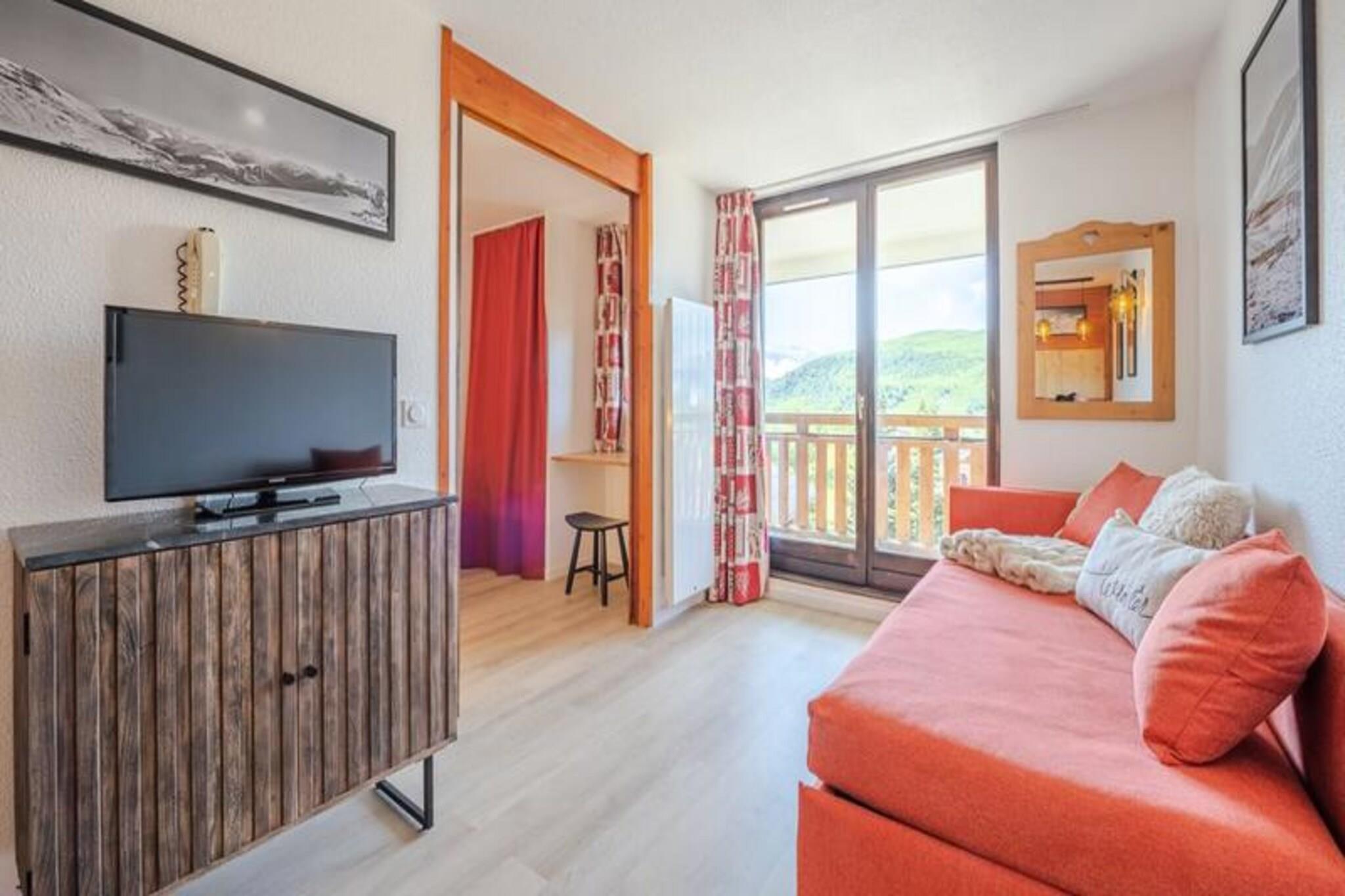 Denne hyggelige lejlighed på 32 m² på femte sal tilbyder et dejligt tilflugtssted med uhindret udsigt over bjergene, golfbanen og tennisbanerne. Det har et soveværelse med trillesenge i chaiselong-stil til to, et kabineområde med to køjesenge og en stue med et andet sæt chaiselong-stil udtrækssenge, hvilket sikrer rigelig plads til op til seks gæster. Lejligheden er kæledyrsfri og holder et rent og allergivenligt miljø. Bemærk venligst, at sengelinned, håndklæder og slutrengøring ikke er inkluderet, hvilket giver gæsterne mulighed for at personliggøre deres oplevelse. Beliggende ved foden af ??pisterne har denne lejlighed en uovertruffen beliggenhed nær skilifter, ESF (Fransk Skiskole) og forskellige rekreative faciliteter. Uanset om du kører på pisterne eller nyder nærliggende attraktioner, såsom lokale caféer, travle markeder og butikker, er denne ejendom perfekt positioneret til at forbedre din alpine ferie. Balkonens sydvestlige eksponering giver et roligt sted at nyde den panoramiske udsigt over bjergene. Lejligheden er fuldt udstyret med moderne bekvemmeligheder for at sikre et behageligt ophold. Køkkenet har mikroovn, opvaskemaskine og keramisk kogeplade til nem tilberedning af måltider. Badeværelset har badekar, håndklædetørrer og separat toilet for ekstra privatliv. Derudover holder et sikkert skiskab dit udstyr sikkert, hvilket gør det til den perfekte base for en aktiv og afslappende ferie i bjergene.
