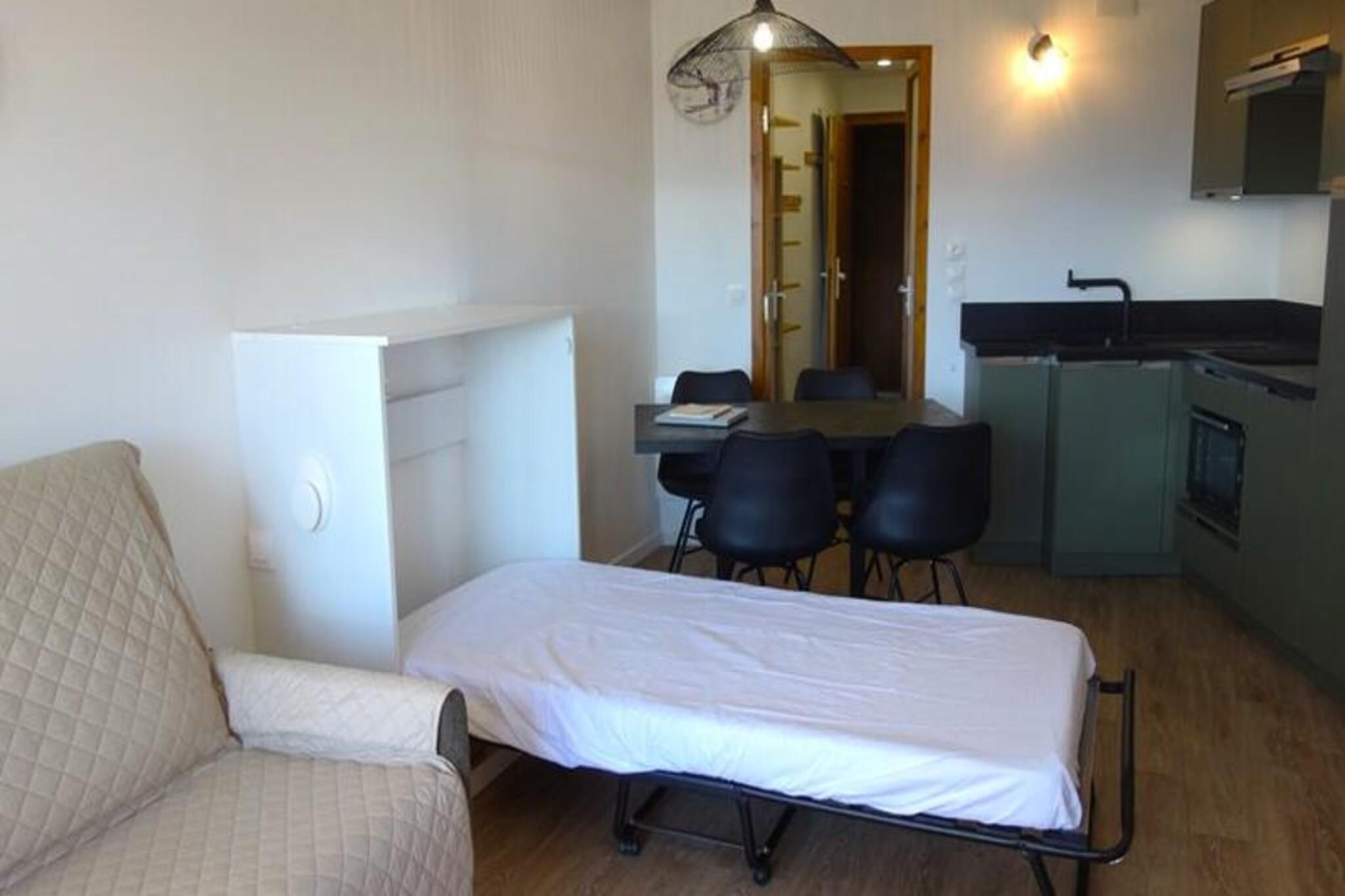 Denne lejlighed på 30 m² er et ideelt tilflugtssted for op til 4 gæster, og tilbyder komfortabel indkvartering med en dobbeltseng i soveværelset sammen med en sovesofa og en enkeltseng i stuen. Hvert værelse er udstyret med et tv til underholdning. Ejendommen er ikke kæledyrsvenlig, hvilket sikrer en rolig og stille atmosfære for alle gæster. En sydvendt altan giver en fantastisk udsigt over stationen, og et skiskab er tilgængeligt til praktisk opbevaring af dit udstyr. Overdækket parkering sikrer nem adgang under dit ophold. Denne lejlighed ligger lige i hjertet af feriestedet og tilbyder nem adgang til butikker, caféer og restauranter, alle inden for gåafstand. Gæsterne kan nyde at gennemse lokale markeder, nyde regionale retter og nyde resortets livlige atmosfære. Derudover er lejligheden placeret tæt på pisterne, hvilket gør den perfekt for dem, der er ivrige efter at køre i skilifterne eller udforske områdets udendørsaktiviteter. Lejligheden har et veludstyret køkken med opvaskemaskine, mikrobølgeovn, elektrisk ovn og kogeplader, så du kan tilberede dine egne måltider. Badeværelset har bruser, og et separat toilet tilbyder ekstra bekvemmelighed. Opvarmning sikrer et behageligt ophold hele året rundt. Sengelinned, håndklæder og slutrengøring er ikke inkluderet, hvilket giver dig fleksibiliteten til at skræddersy din oplevelse.