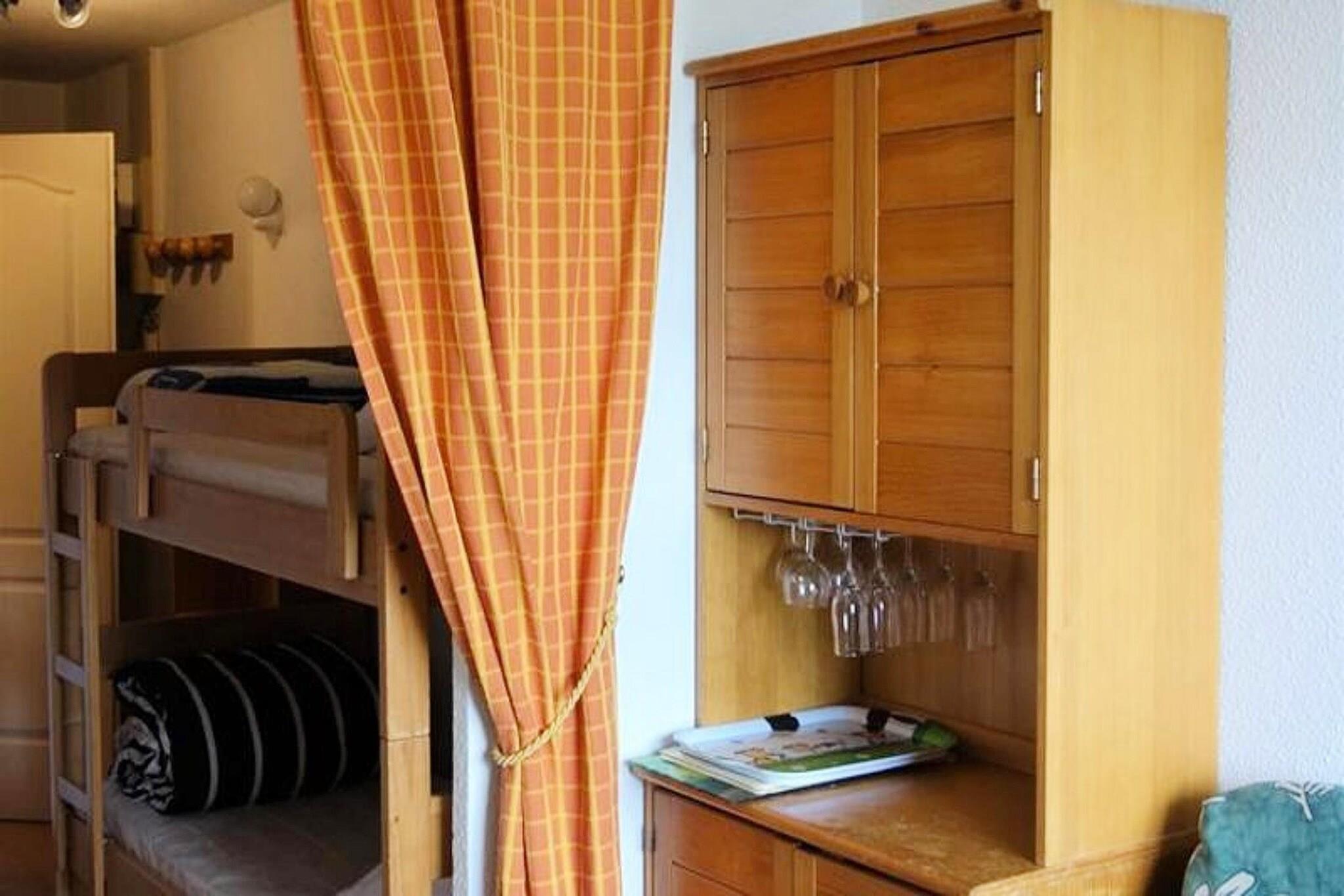 Denne lejlighed på 24 m² tilbyder hyggelig indkvartering for op til fem gæster, med et soveværelse med en dobbeltseng, en beboelig hall med to køjesenge og en stue med en sovesofa og tv for ekstra komfort. Ejendommen er kæledyrsvenlig, hvilket giver kæledyr mulighed for at deltage i dit ophold mod et ekstra gebyr, hvilket gør det til et ideelt valg for familier eller grupper, der rejser med deres lodne venner. Lejligheden er perfekt beliggende kun 50 meter fra ALPE EXPRESS gondolen, hvilket sikrer nem adgang til pisterne for ski- og snowboardentusiaster. Derudover er gratis shuttle-tjenester tilgængelige, som tilbyder bekvem transport i hele området. Gæster kan også udforske nærliggende butikker, caféer og faciliteter, hvilket giver masser af muligheder for at spise, shoppe og nyde den lokale kultur. Det veludstyrede køkken har en mini elektrisk ovn, to keramiske kogeplader, et køleskab og en vaskemaskine, der tilbyder alt hvad du behøver for et behageligt ophold. Badeværelset har bruser, og der er separat toilet for nemheds skyld. En sydvendt altan giver en fantastisk udsigt, og skiskabet sørger for, at dit udstyr opbevares sikkert. Sengetøj, håndklæder og slutrengøring er ikke inkluderet i lejen. Opvarmning er også sørget for et varmt og behageligt ophold.