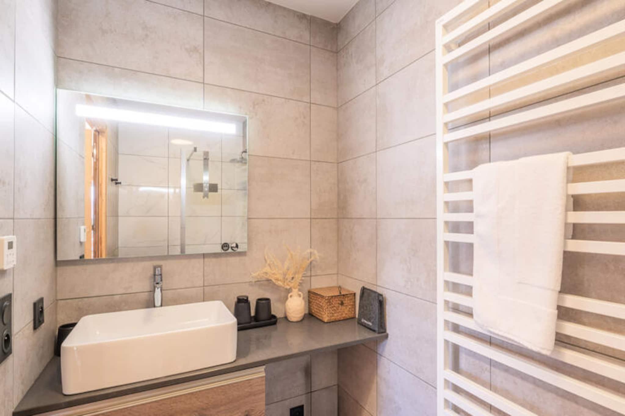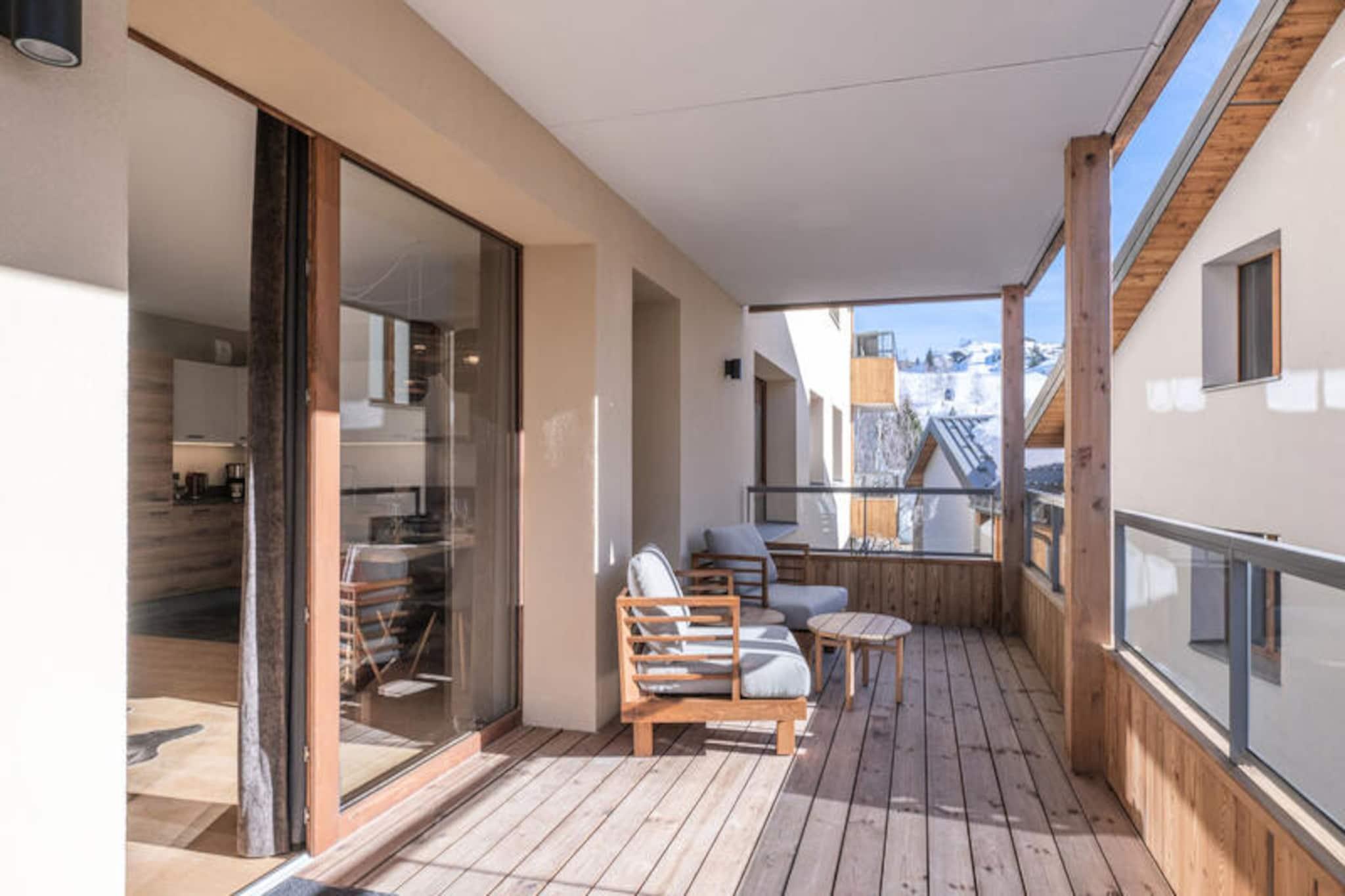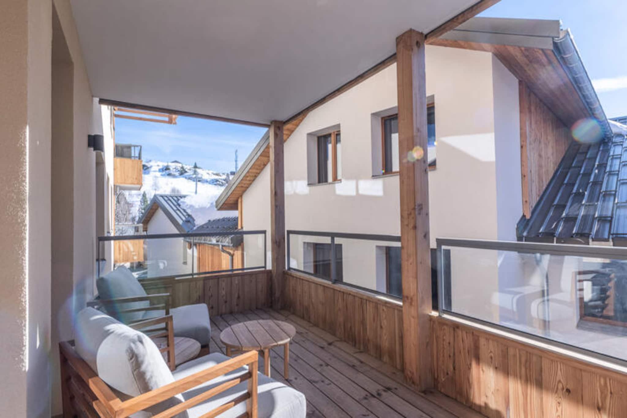 I hjertet af Vieil Alpe, hvor charmen fra traditionelle alpelandsbyer møder moderne komfort, ligger den exceptionelle residens Fermes de l'Alpe. Dette nybyggede tilflugtssted, inspireret af den rustikke arkitektur fra bjerggårde, tilbyder en varm og indbydende atmosfære til din næste alpeferie. Omgivet af betagende udsigter og kun 400 meter fra feriestedets centrum, er dette den perfekte base for at udforske det pulserende Alpe d'Huez-område. Lejlighed A101, beliggende på første sal i bygning A, er et hyggeligt fristed designet med lokale materialer, der udstråler varme og autenticitet. Den lyse stue inviterer dig til at slappe af efter en dag på pisterne, mens det åbne køkken og spisestue er perfekte til at dele måltider med dine kære. Gå ud på den sydvendte balkon for at nyde den friske bjergluft og det fantastiske alpine landskab. Lejligheden har komfortabel plads til op til fem gæster med et soveværelse med dobbeltseng og et andet soveværelse med tre enkeltsenge, inklusive en køjeseng. Et separat badeværelse og toilet sikrer bekvemmelighed for alle. Med pisterne og skilifterne kun en kort gåtur væk, er dine alpine eventyr altid inden for rækkevidde. Efter en dag med skiløb, vandreture eller udforskning kan du vende tilbage til komforten i denne veludstyrede lejlighed, hvor sengelinned er inkluderet, sengene er redt ved ankomst, og slutrengøring er inkluderet. Yderligere faciliteter såsom Wi-Fi, en garage med elektrisk ladepunkt og en højdevenlig parkeringsplads bidrager til dit opholds bekvemmelighed. Uanset om du er her for skiløb i verdensklasse, den pulserende feriestedsatmosfære eller blot for at slappe af midt i en fantastisk naturskønhed, tilbyder Fermes de l'Alpe en uforglemmelig alpin oplevelse. Lad magien i Vieil Alpe fange dig og skabe minder for livet.