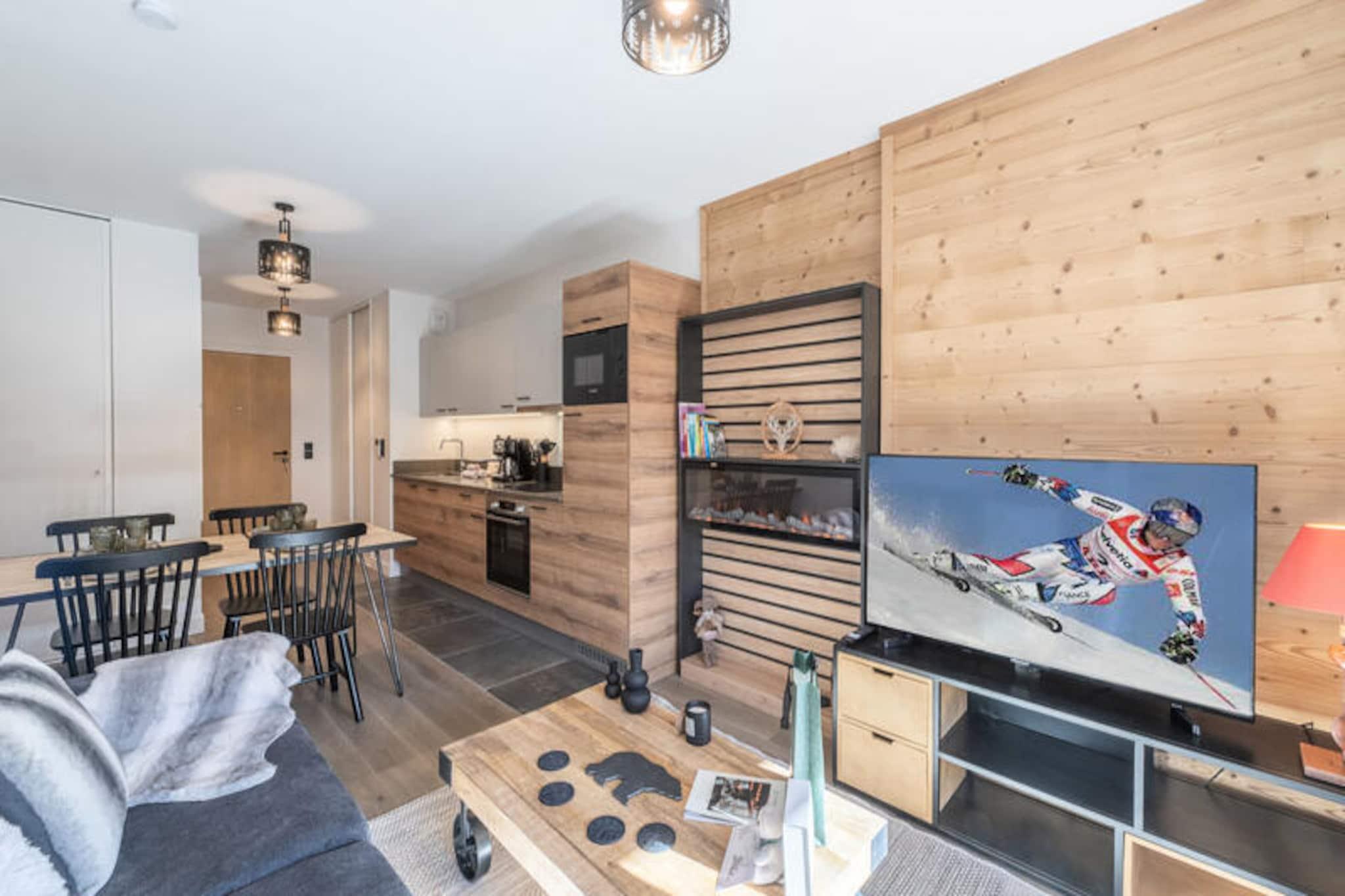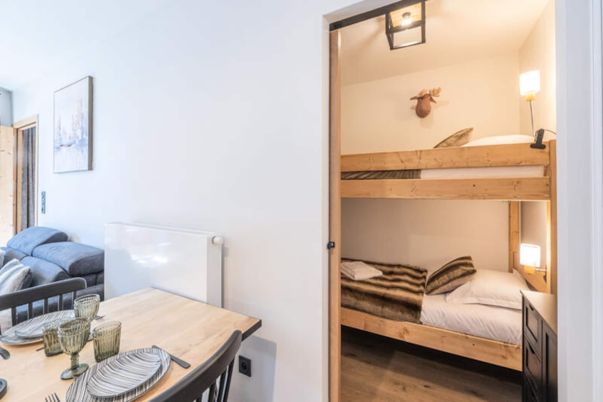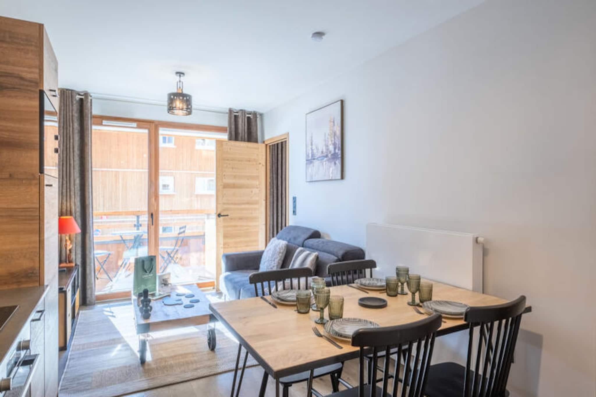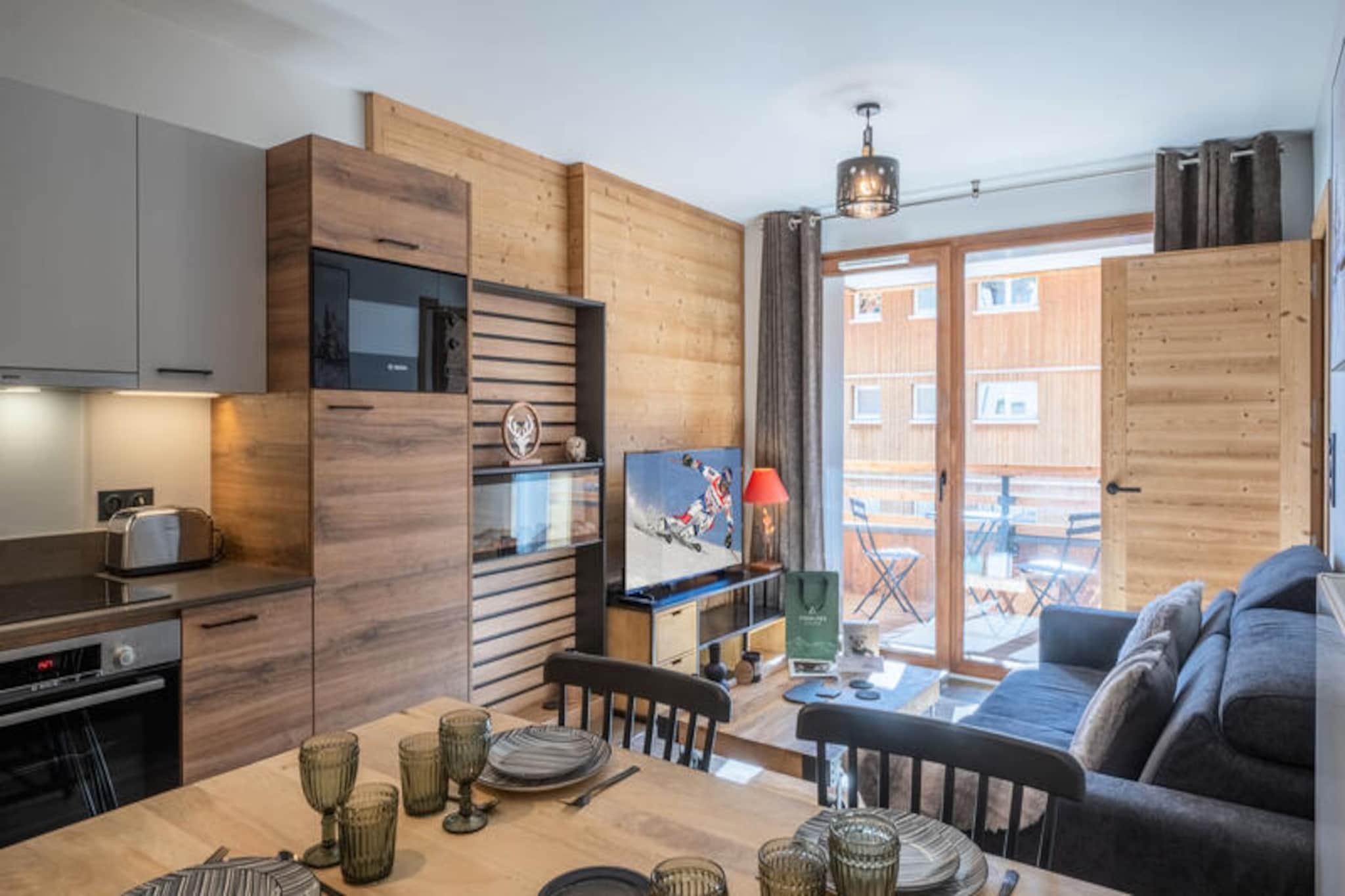 Højt oppe i de franske alper, hvor charmen fra alpin tradition møder moderne luksus, ligger residensen Fermes de l'Alpe i det maleriske Vieil Alpe-distrikt i Alpe d'Huez. Kun 400 meter fra feriestedets centrum tilbyder dette fantastiske tilflugtssted en perfekt blanding af ro og bekvemmelighed, omgivet af betagende bjergudsigter og den pulserende energi fra en af ??Frankrigs mest elskede skisportssteder. Uanset om du søger spændende dage på pisterne eller fredelige aftener ved pejsen, inviterer denne ejendom dig til at opleve Alpernes magi i enhver sæson. Denne smukt designede lejlighed på 44 m² er ideel til en familie på fire og har et lyst, åbent opholdsområde, der problemfrit forbinder med et fuldt udstyret køkken. Det hyggelige soveværelse med dobbeltseng og det charmerende bjerghjørne med køjesenge sikrer afslappende nætter efter en dag med alpine eventyr. Et moderne badeværelse med bruser og toilet bidrager til komforten, mens den private terrasse tilbyder et roligt sted at nyde den friske bjergluft. Yderligere faciliteter inkluderer et skirum, indendørs parkering med et elektrisk ladepunkt og Wi-Fi, hvilket sikrer et problemfrit og afslappende ophold. Fermes de l'Alpe-residensen er perfekt placeret med nem adgang til skiløjperne og det livlige feriestedscentrum, hvor du finder et udvalg af butikker, restauranter og afterski-muligheder. Med sin nærhed til pisterne er denne lejlighed et paradis for skientusiaster, mens sommergæster vil nyde vandrestierne, cykelruterne og den panoramaudsigt, der gør Alpe d'Huez til en destination året rundt. Med sin blanding af alpin charme, moderne komfort og en uovertruffen beliggenhed er denne ejendom den perfekte base for at skabe uforglemmelige minder i hjertet af de franske alper.