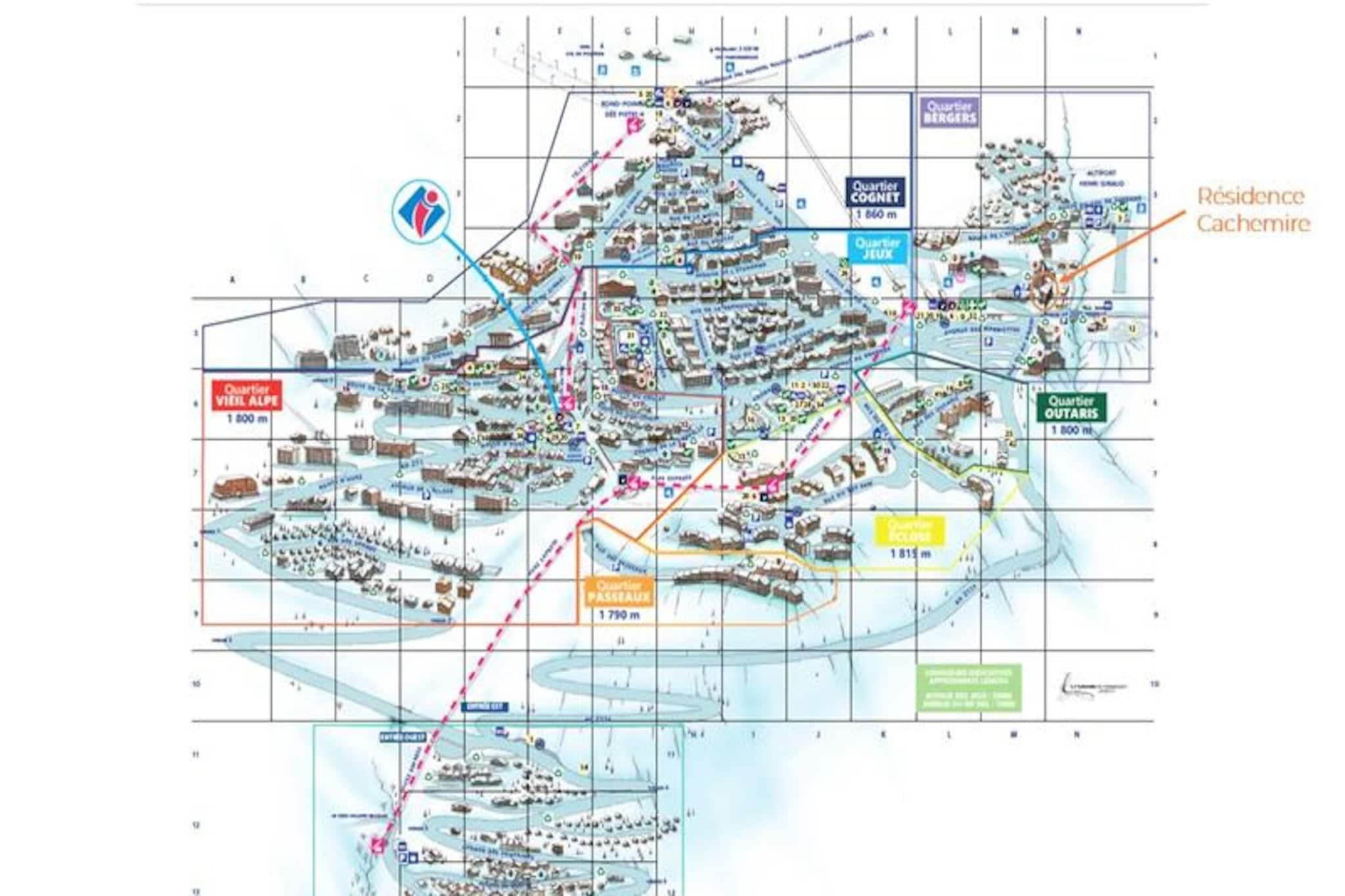 I det pulserende Bergers-distrikt i Alpe d'Huez lover denne elegante lejlighed i den nybyggede Le Cachemire-residens en bjergflugt som ingen anden. Fra den sydvendte balkon kan du nyde den storslåede udsigt over de majestætiske tinder, mens du soler dig i det alpine solskin. Uanset om du er her for spændende vinterskiløb eller de endeløse sommeraktiviteter, tilbyder beliggenheden uovertruffen bekvemmelighed med skilifte, pister, butikker og endda en golfbane kun få skridt væk. Den rolige, men livlige atmosfære gør det til et perfekt tilflugtssted for både familier og venner. \n\nIndenfor blander den 71 m² store lejlighed moderne komfort med alpin charme. Den lyse stue, komplet med en hyggelig pejs, inviterer dig til at slappe af efter en dag med eventyr. Det åbne køkken er fuldt udstyret med en Nespresso-kaffemaskine, opvaskemaskine og vaskemaskine, hvilket sikrer alle hjemmets bekvemmeligheder. Sovearrangementerne er omhyggeligt designet og omfatter et dobbeltværelse med eget badeværelse og en luksuriøs 180x200 cm seng, et andet dobbeltværelse og et bjerghjørne med en køjeseng - ideelt til børn. To veludstyrede badeværelser, herunder det ene med badekar, bidrager til bekvemmeligheden og komforten. \n\nUd over lejligheden tilbyder Alpe d'Huez et væld af aktiviteter. Om vinteren kan du nyde skiløb i verdensklasse på de berømte pister, mens sommeren byder på muligheder for vandreture, cykling og golf midt i en betagende natur. De nærliggende butikker og restauranter tilbyder alt, hvad du behøver, fra lokale delikatesser til afterskiing-underholdning. \n\nVælg denne exceptionelle bolig til din næste alpine ferie og skab uforglemmelige minder i hjertet af de franske alper.