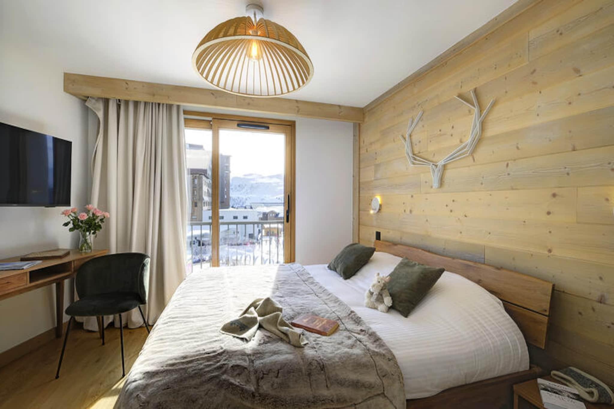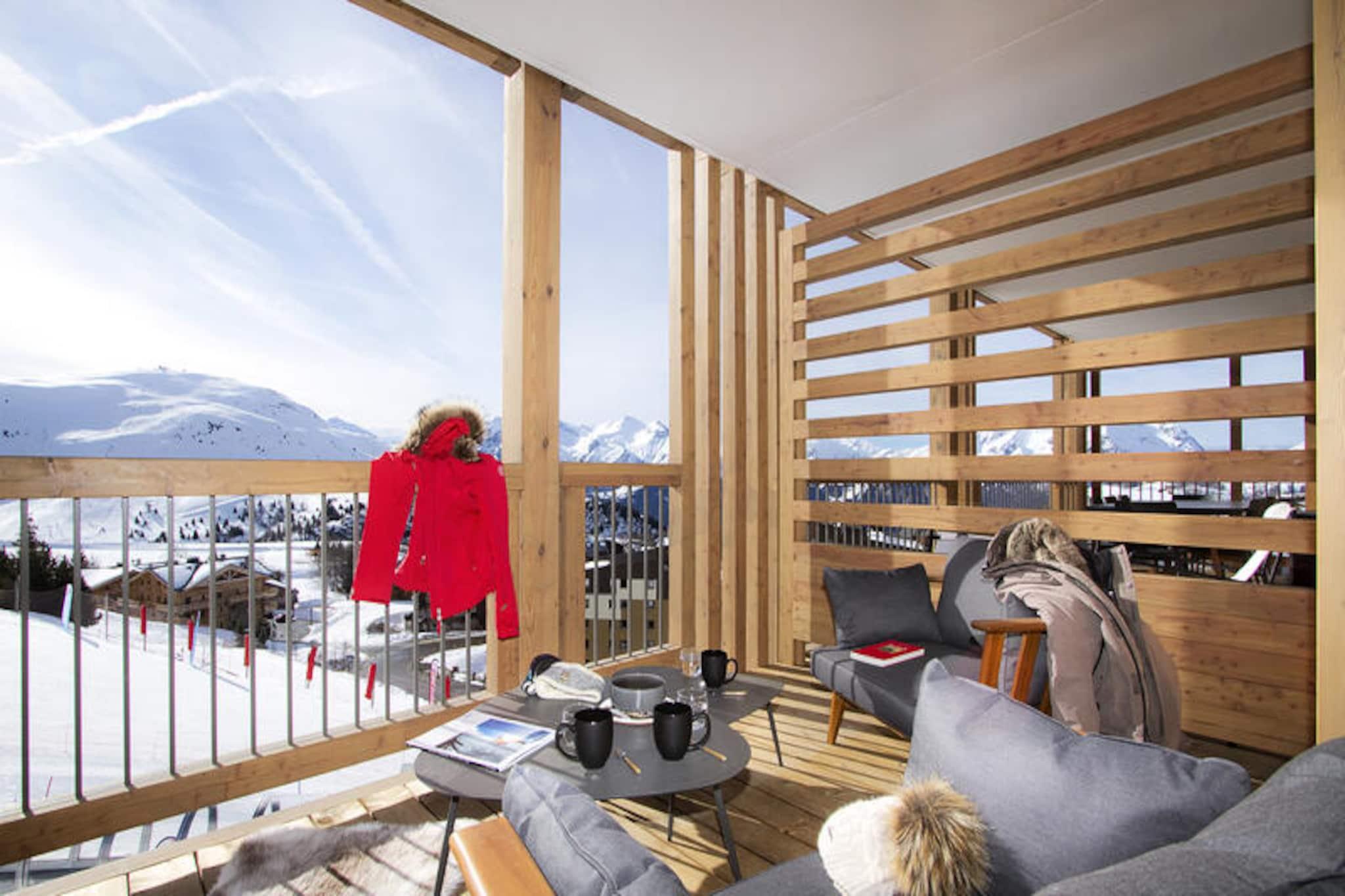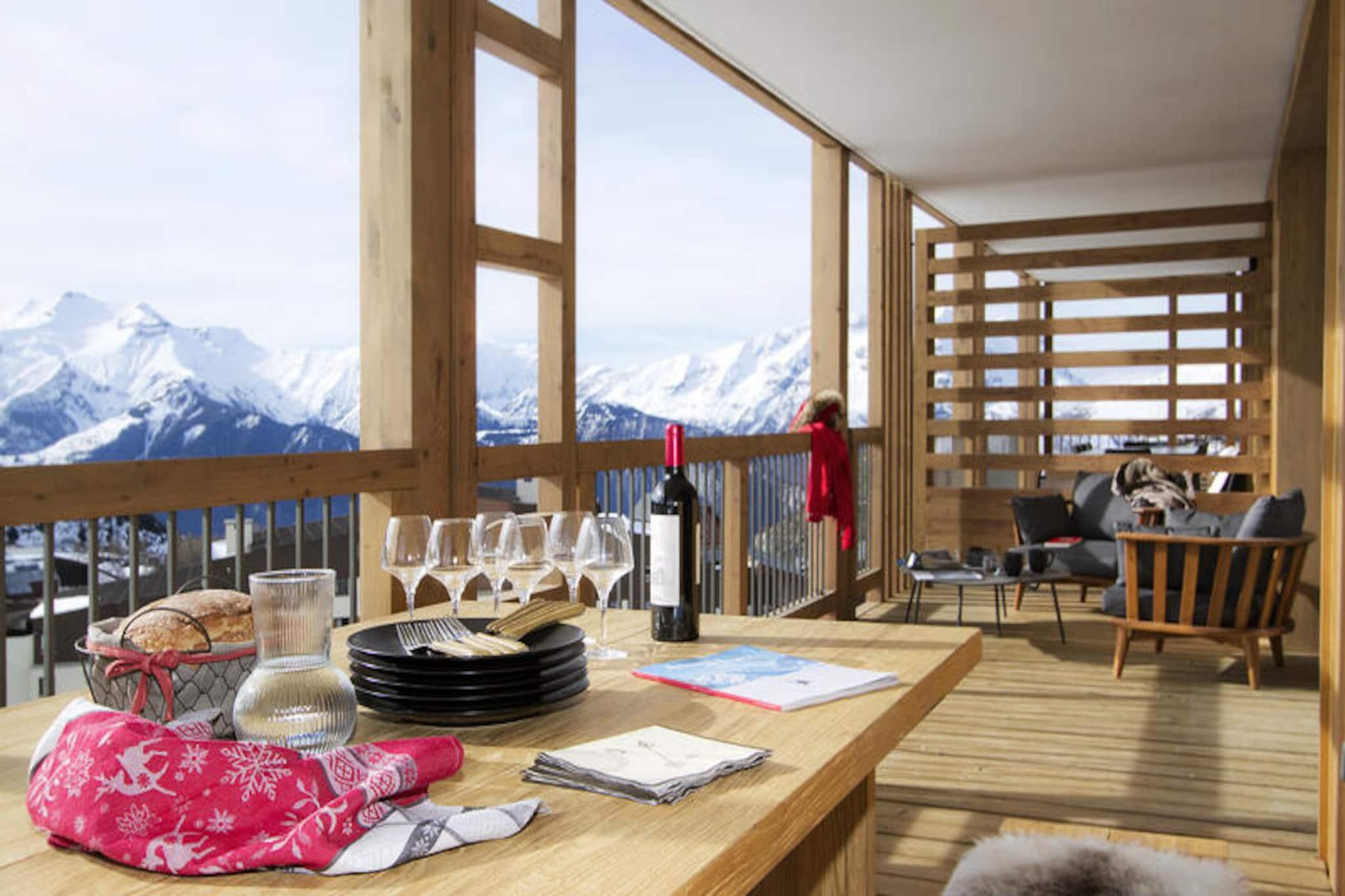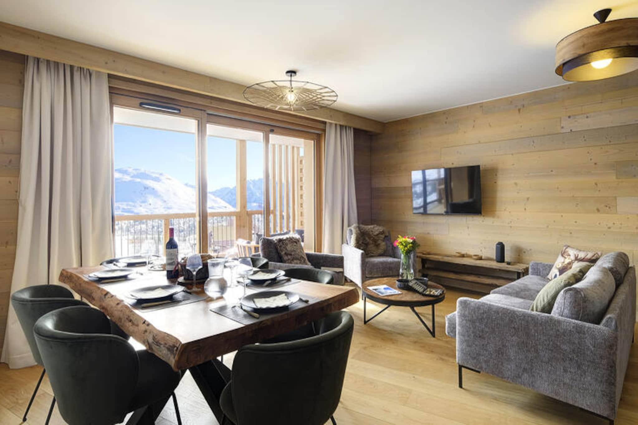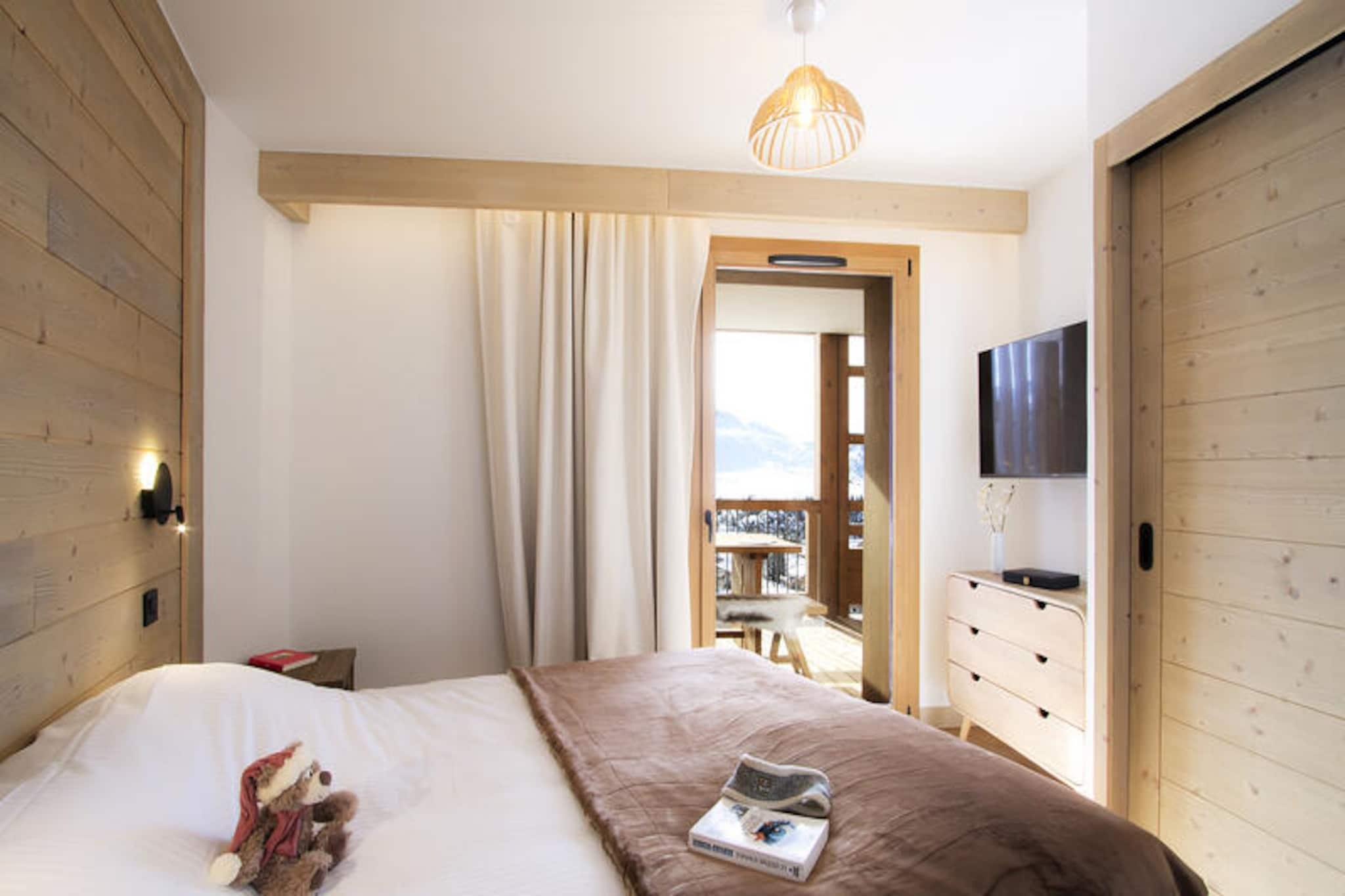 Forestil dig at vågne op til den bløde morgensol, der strømmer ind gennem dine vinduer, træde ud på din private sydvendte terrasse og nyde panoramaudsigten over de uberørte pister. Denne rummelige og lyse lejlighed er et sandt alpint tilflugtssted, der tilbyder en perfekt blanding af moderne komfort og bjergcharme. Beliggende i en bolig med ski-in/ski-out adgang, er det et ideelt paradis for både vintersportsentusiaster og naturelskere. \n\nIndenfor kan lejligheden prale af en stor, lys opholds- og spisestue, perfekt til at samles med familie eller venner efter en dag på pisterne. Det fuldt udstyrede køkken, komplet med ovn, induktionskogeplade, mikrobølgeovn og opvaskemaskine, gør det til en leg at tilberede måltider. Med tre hyggelige soveværelser, herunder to med luksuriøse dobbeltsenge og et med to enkeltsenge, samt en sovealkove med køjesenge, kan lejligheden komfortabelt rumme op til otte gæster. Tre badeværelser, en vaskemaskine/tørretumbler og et separat toilet sikrer bekvemmelighed for alle. \n\nSelve boligen er et afslapningsparadis med swimmingpool, fitnesscenter, sauna, dampbad og sensoriske brusere. Efter en aktiv dag kan du slappe af i disse luksuriøse faciliteter eller blot nyde roen på din terrasse. To private garager bidrager til bekvemmeligheden og gør dit ophold problemfrit og stressfrit. \n\nDenne lejlighed ligger i hjertet af de franske alper og tilbyder ikke kun direkte adgang til skiløb i verdensklasse, men også nærhed til charmerende alpelandsbyer, naturskønne stier og livlige afterski-steder. Uanset om du er her for at grave dig gennem frisk puddersne, vandre i fantastiske landskaber eller blot slappe af i rolige omgivelser, lover denne ejendom en uforglemmelig ferie. Lad bjergenes magi betage dig og skabe dyrebare minder året rundt.