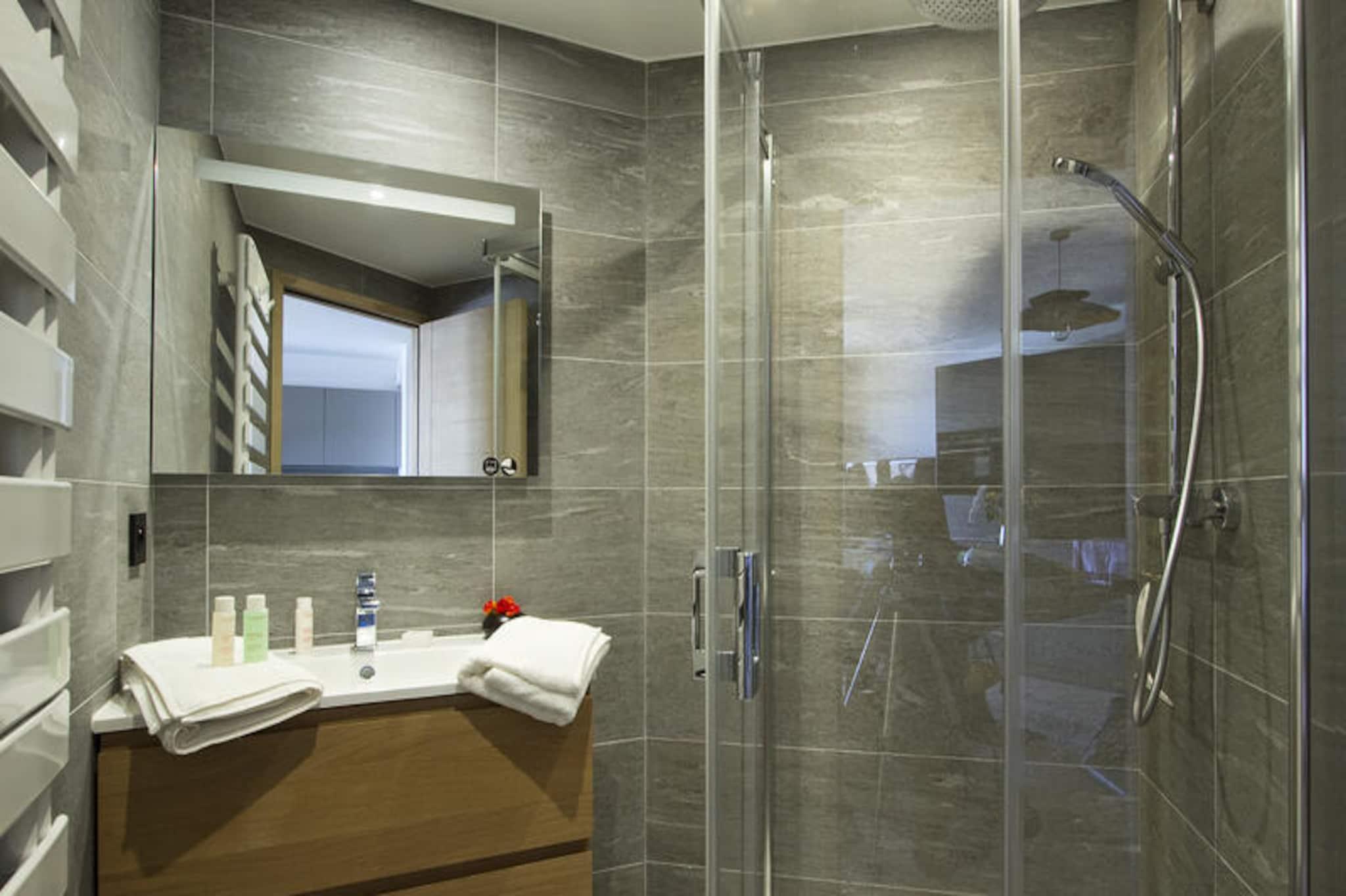 Bad i de franske alpers gyldne lys i denne luksuriøse lejlighed på 43 m², perfekt placeret med ski-in/ski-out adgang i en prestigefyldt ny bolig. Med sin sydvendte beliggenhed tilbyder ejendommen uforstyrret udsigt over pisterne, hvilket gør den til et idyllisk tilflugtssted for både vintersportsentusiaster og dem, der søger en rolig alpin flugt. Fra det øjeblik du ankommer, omslutter kombinationen af ??moderne elegance og bjergcharme dig i komfort og stil. Indenfor er lejligheden omhyggeligt designet til at imødekomme alle dine behov. Det fuldt udstyrede køkken kan prale af apparater af højeste kvalitet, herunder induktionskogeplade, ovn, mikrobølgeovn, opvaskemaskine og endda raclette- og fondue-sæt til hyggelige aftener. Stuen inviterer dig til at slappe af på en blød sofa, mens du nyder dine yndlingsprogrammer på fladskærms-tv'et. En kingsize-seng i soveværelset sikrer afslappende nætter, mens sovealkoven med køjesenge er perfekt til børn eller ekstra gæster. Det separate brusebad og toilet øger bekvemmeligheden, og den 13 m² store balkon giver et privat rum til at nyde den fantastiske alpine udsigt. Selve boligen er et afslappende paradis med en opvarmet indendørs pool, sauna, dampbad, sensoriske brusere og et fitnesscenter. Et skirum med støvletørrer sikrer problemfri morgener på pisterne, mens en privat garage øger bekvemmeligheden. Denne ejendom ligger i hjertet af Alperne og tilbyder ikke kun førsteklasses faciliteter, men også en førsteklasses beliggenhed til at udforske regionen. Uanset om du cykler gennem frisk puddersne, vandrer på naturskønne stier eller blot nyder den friske bjergluft, lover denne lejlighed en uforglemmelig alpin ferie.