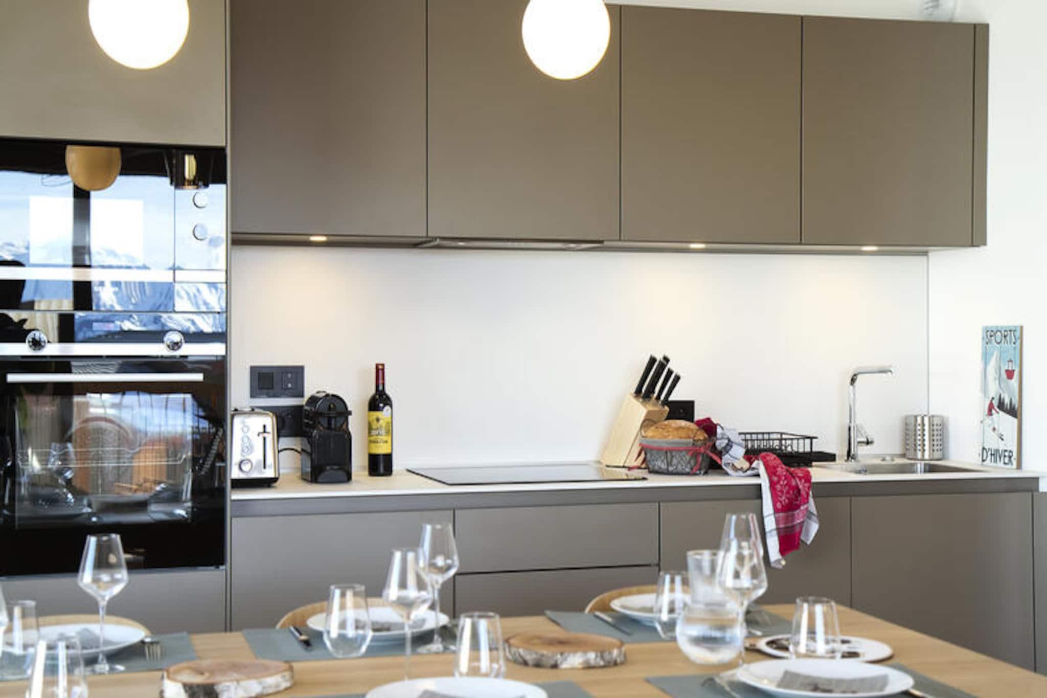 I hjertet af de franske Alper, hvor Tarentaise-dalens uberørte pister møder den varme alpine gæstfrihed, tilbyder denne lyse lejlighed en uovertruffen ski-in/ski-out-oplevelse. Forestil dig at starte din morgen med solens stråler gennem de store vinduer, træde ud på din private 20 m² terrasse for at nyde den uhindrede udsigt over de snedækkede pister og mærke den friske bjergluft, der vækker dine sanser. Dette er mere end bare et feriehus; det er din indgang til den ultimative alpine ferie. Lejligheden er designet med både komfort og stil for øje og har et lyst og solrigt opholdsområde med en hyggelig stue/spisestue udstyret med tv. Det moderne køkken har ovn, mikroovn, opvaskemaskine, køleskab og induktionskomfur, så det er nemt at tilberede solide måltider efter en dag på pisterne. Soveforholdene er perfekte for familier eller grupper, med et soveværelse med kingsize-seng og tv, et andet med queensize-seng og en sovealkove med køjesenge. Et separat badeværelse og toilet sikrer bekvemmelighed for alle gæster. Selve boligen er et fristed for afslapning og luksus. Efter en dag på ski kan du slappe af i den opvarmede swimmingpool, genoplive dig selv i saunaen eller dampbadet eller forkæle dig selv med sansestimulerende brusere. Fitnessentusiaster vil sætte pris på det lokale fitnesscenter, mens skirummet giver direkte adgang til pisterne, hvilket gør hvert øjeblik af dit ophold problemfrit og behageligt. Med sengelinned, håndklæder og velkomstprodukter samt opredte senge ved ankomsten og rengøring ved afrejsen inkluderet, sikrer denne bolig en stressfri ferie. Uanset om du er her for at opleve skiløb i verdensklasse, den fredfyldte udsigt over bjergene eller de luksuriøse faciliteter, lover denne lejlighed et uforglemmeligt ophold i Alperne.