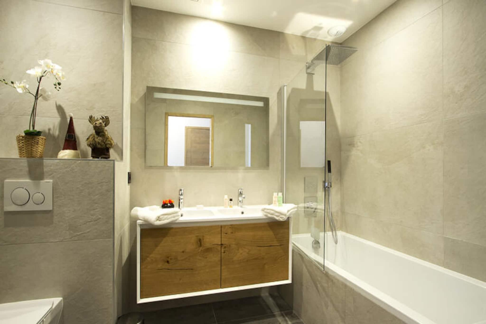 Højt over det fredfyldte alpine landskab inviterer denne fantastiske penthouselejlighed på 115 m² dig til at opleve det ultimative bjergtilflugtssted. Med sine synlige træbjælker og store solrige stue udstråler rummet varme og charme, hvilket gør det til et perfekt tilflugtssted for din næste ferie. Forestil dig at starte dine morgener med en kop kaffe på den sydøstvendte 23 m² store balkon, mens du nyder den betagende udsigt over pisterne, eller slappe af på den nordøstvendte balkon, mens solen går ned bag bjergtoppene. Indenfor tilbyder lejligheden en harmonisk blanding af rustik charme og moderne bekvemmeligheder. Den rummelige opholds- og spisestue er udstyret med et stort tv, perfekt til hyggelige aftener efter en dag på pisterne. Det fuldt udstyrede køkken har induktionskogeplade, ovn, mikrobølgeovn, opvaskemaskine, vaskemaskine og køleskab, der sikrer, at alle dine kulinariske behov bliver opfyldt. Med fire dobbeltværelser, en sovealkove med køjesenge, et brusebad med toilet, et badeværelse og et ekstra separat toilet, rummer denne bolig komfortabelt familier eller vennegrupper. Boligen kan prale af ski-in/ski-out adgang, så du nemt kan komme ud på pisterne. Efter en eventyrlig dag kan du forkæle dig selv med faciliteterne på stedet, herunder swimmingpool, fitnesscenter, sauna, dampbad og sensoriske brusere. Ejendommen har også en privat garage for ekstra bekvemmelighed. Med sengelinned, håndklæder og velkomstprodukter samt opredte senge ved ankomst og slutrengøring er hver eneste detalje omhyggeligt designet til din komfort. Uanset om du er her for spændingen ved skiløb eller roen i bjergene, tilbyder denne lejlighed en uforglemmelig alpin flugt.