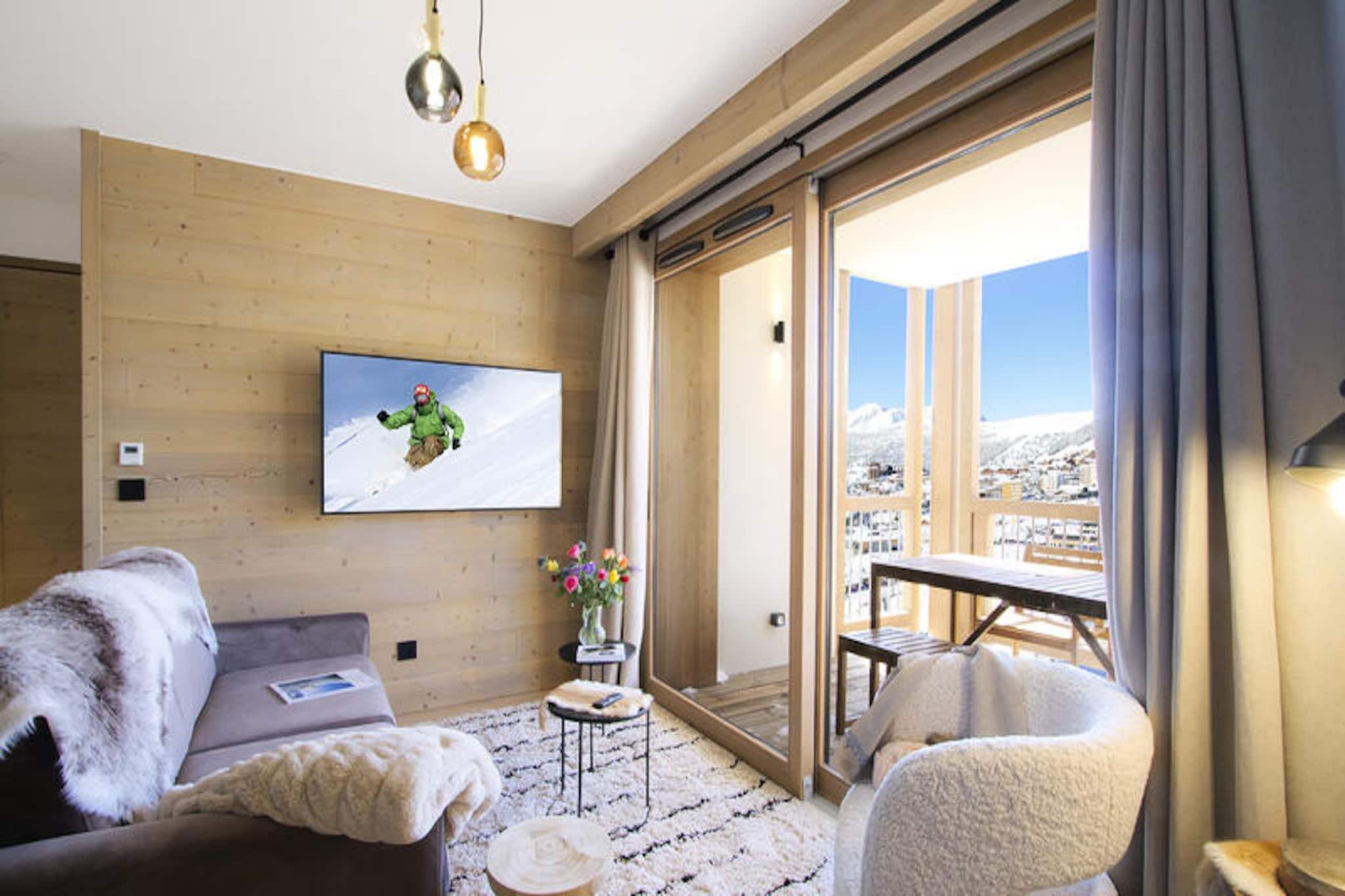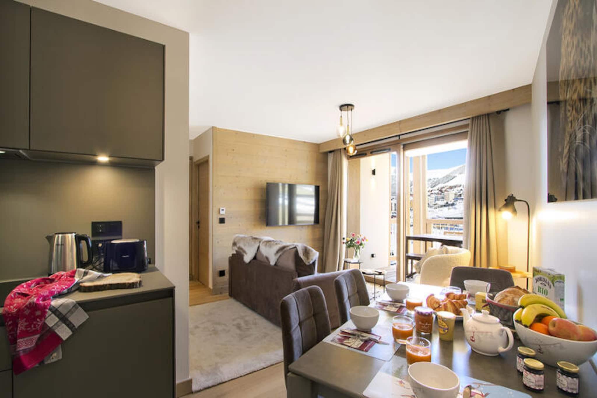 Væk dine sanser i dette dejlige alpine tilflugtssted, hvor den friske bjergluft og den betagende udsigt sætter tonen for en uforglemmelig ferie. Beliggende i en moderne bolig med direkte ski-in/ski-out adgang, er denne lejlighed et paradis for både vintersportsentusiaster og sommereventyrere. Uanset om du snor dig gennem uberørte pister eller udforsker naturskønne vandrestier, tilbyder denne beliggenhed den perfekte balance mellem aktivitet og afslapning. Træd indenfor og oplev et varmt og indbydende opholdsrum, komplet med en hyggelig stue/spisestue, der åbner ud til en rummelig nordøstvendt balkon. Det fuldt udstyrede køkken med ovn, mikrobølgeovn, opvaskemaskine, induktionskogeplade og køleskab gør det til en leg at tilberede måltider. Lejligheden har komfortabel plads til op til fire gæster med et roligt soveværelse med dobbeltseng og tv samt en charmerende sovealkove med køjesenge. Moderne faciliteter som gratis Wi-Fi, vaskemaskine og et elegant brusebad med separat toilet sikrer et bekvemt og behageligt ophold. Selve boligen er en skattekiste af luksus og kan prale af en swimmingpool, fitnesscenter, sauna, dampbad og endda sensoriske brusere til at forynge sig efter en dag med eventyr. Skirummet giver problemfri adgang til pisterne, mens en privat garage tilføjer et ekstra lag af bekvemmelighed. Med sin førsteklasses beliggenhed og gennemtænkte faciliteter er denne ejendom mere end bare et sted at bo – det er en port til det bedste af de franske alper. Fra spændende skidage til rolige sommeraftener på balkonen er hvert øjeblik her designet til at inspirere og glæde.