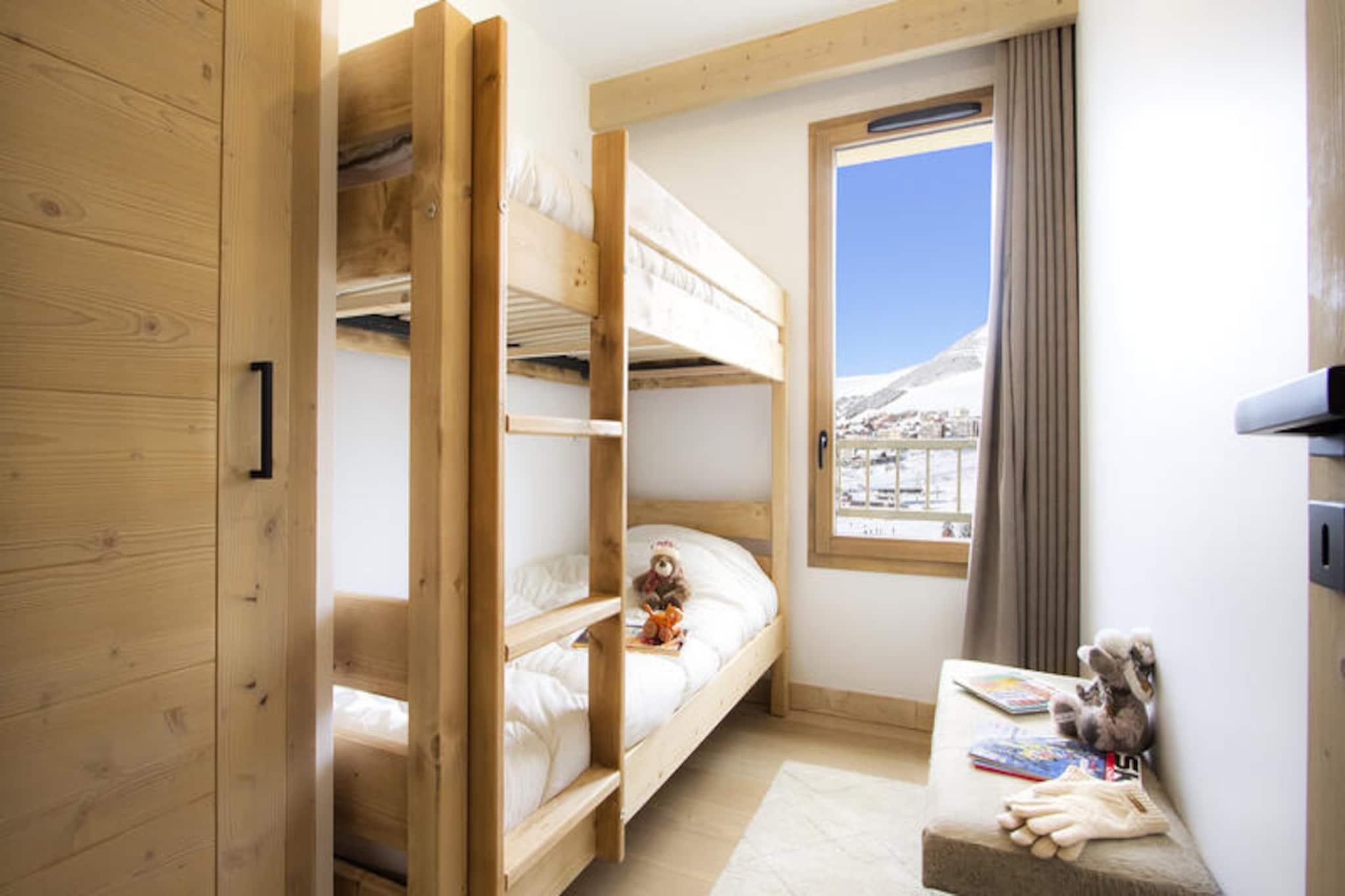 Forestil dig at vågne op til den fredfyldte skønhed i de franske alper, hvor hver morgen begynder med en betagende udsigt over snedækkede skråninger og majestætiske tinder. Denne rummelige og moderne lejlighed, beliggende i en helt ny bolig, tilbyder den perfekte ski-in/ski-out-oplevelse for dem, der søger både eventyr og afslapning. Med direkte adgang til pisterne starter din alpine flugt i det øjeblik, du træder udenfor. Indenfor er lejligheden et paradis af komfort og stil. Den store stue, der er fyldt med naturligt lys fra store karnapvinduer, inviterer dig til at slappe af efter en dag på bjerget. Den åbne stue og spisestue har et hyggeligt tv-hjørne, mens det fuldt udstyrede køkken kan prale af en kombineret ovn, induktionskogeplade, opvaskemaskine og køleskab - alt hvad du behøver for at tilberede solide måltider. Sovearrangementerne er omhyggeligt designet med et roligt soveværelse med en dobbeltseng og en hyggelig sovealkove med køjesenge, perfekt til familier eller små grupper. Et elegant brusebad med vaskemaskine og et separat toilet øger bekvemmeligheden. Træd ud på den 13 m² store terrasse, hvor du kan nyde den uhindrede udsigt over pisterne mod nordvest – et perfekt sted til en aftenaperitif. Ud over lejligheden tilbyder boligen exceptionelle faciliteter, herunder en swimmingpool, fitnesscenter og sikker adgang med en digital kode. Skirummet giver problemfri adgang til pisterne, hvilket sikrer, at din dag starter uden besvær. Beliggende i hjertet af de franske alper, er du kun få øjeblikke fra pulserende afterskiing-steder, charmerende alpelandsbyer og endeløse udendørs eventyr. Uanset om du er her for at grave dig gennem frisk puddersne, udforske naturskønne stier eller blot slappe af i den rolige bjergatmosfære, lover denne lejlighed en uforglemmelig alpeferie. Med sengelinned, håndklæder og slutrengøring inkluderet, skal du blot ankomme og nyde.