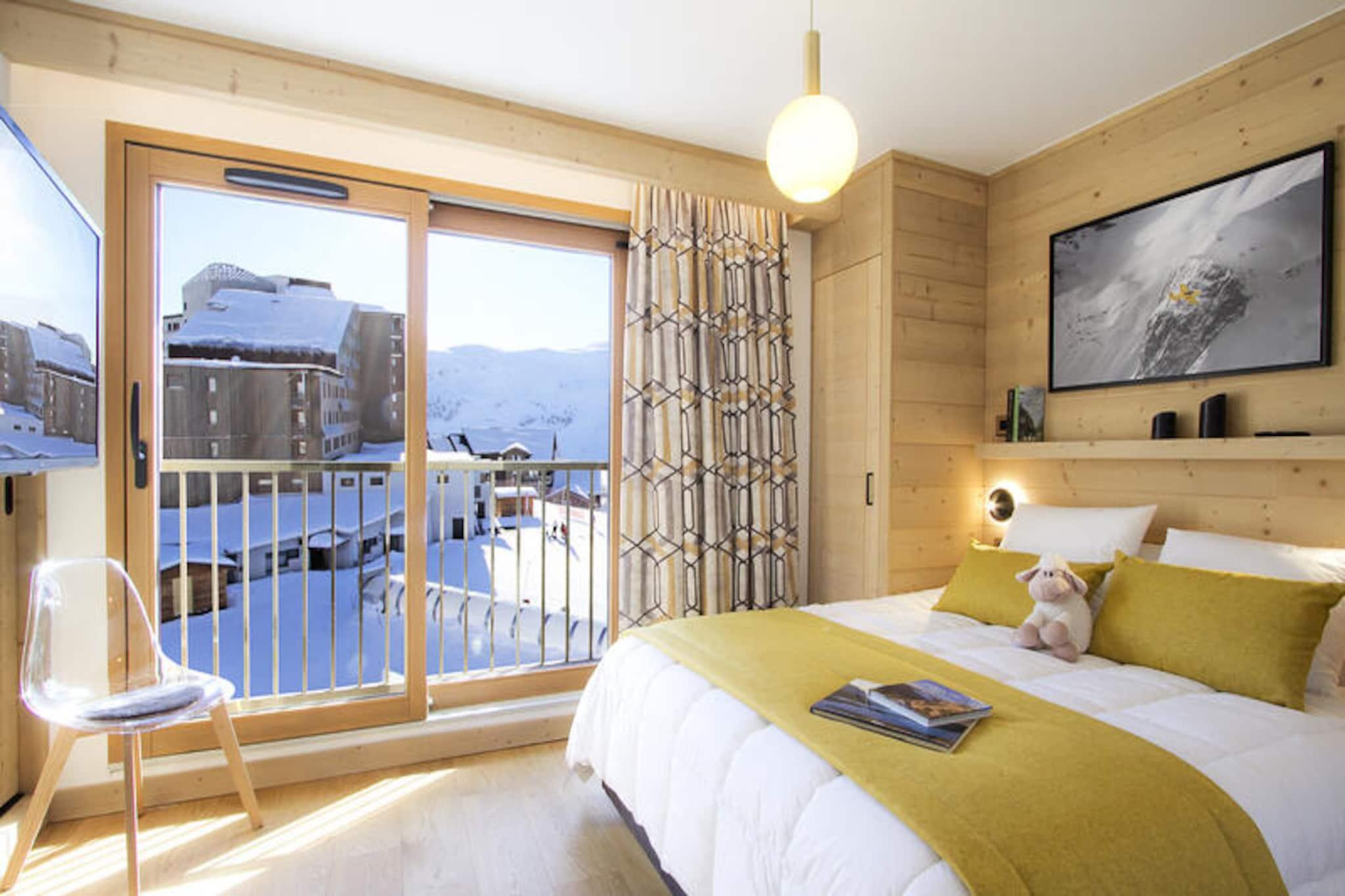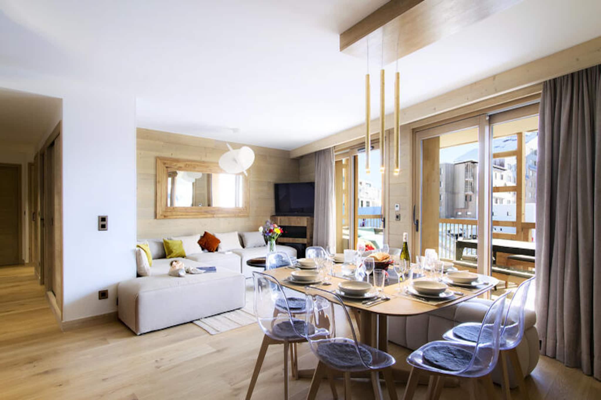 På kanten af ??de betagende franske alper inviterer denne luksuriøse lejlighed på 98 m² dig til at opleve den perfekte blanding af elegance og alpin charme. Badet i sollys åbner den rummelige stue ud til en 13 m² stor balkon med panoramaudsigt og et roligt sted at nyde din morgenkaffe eller et aftenglas vin. Uanset om du er her for vintersport eller sommereventyr, tilbyder denne bolig et roligt, men pulserende tilflugtssted for op til otte gæster. \n\nIndenfor finder du gennemtænkt designede rum, der imødekommer komfort og bekvemmelighed. Stue-/spisestuen har et stort tv til hyggelige aftener, mens det fuldt udstyrede køkken kan prale af moderne apparater, herunder induktionskogeplade, ovn, mikrobølgeovn, opvaskemaskine og endda en raclettegrill til autentiske franske spiseoplevelser. Soveværelserne er stilfuldt indrettede med smart-tv'er og luksuriøst sengetøj, der sikrer afslappende nætter. Lejligheden inkluderer også en vinkælder, to garager, Wi-Fi og premium-tjenester såsom redte senge ved ankomst, håndklæder, velkomstprodukter og slutrengøring. \n\nSelve boligen er et paradis for afslapning og aktivitet. Med direkte adgang til skisportsstedet kan du nemt komme ud på pisterne. Efter en dag med eventyr kan du slappe af i swimmingpoolen, fitnesscentret, saunaen, dampbadet eller forkæle dig selv med sansebrusere. Den solrige beliggenhed og de eksklusive faciliteter gør dette til et enestående valg for kræsne rejsende. \n\nUanset om du udforsker de nærliggende skiløjper eller vandrestier, lover dette 5-stjernede hotel en uforglemmelig alpin ferie. Med sin blanding af luksus, komfort og nærhed til naturen er det den ideelle base for at skabe dyrebare minder i de franske alper.