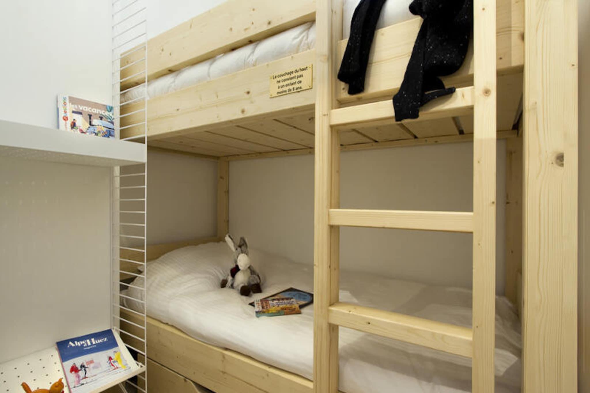Badet i naturligt lys og beliggende på en førsteklasses beliggenhed, tilbyder denne moderne alpine lejlighed en uovertruffen ski-in/ski-out oplevelse. Forestil dig at træde direkte ud på pisterne med de majestætiske franske alper som baggrund. Boligen, en oase af komfort og elegance, kombinerer moderne design med luksuriøse faciliteter, hvilket gør den til det perfekte tilflugtssted for din bjergferie. Uanset om du er her for at grave dig gennem uberørt sne eller sole dig i sommersolen, sikrer denne ejendom et mindeværdigt ophold året rundt. Indenfor har lejligheden komfortabel plads til 4 til 6 gæster. Opholds- og spisestuen, udstyret med et smart-tv og Bluetooth-højttaler, er det ideelle sted at slappe af efter en dag med eventyr. Tekøkkenet kan prale af moderne apparater, herunder induktionskogeplade, køleskab, fryser, opvaskemaskine, ovn, mikrobølgeovn og Nespresso-kaffemaskine, der opfylder alle dine kulinariske behov. Soveværelset har en luksuriøs dobbeltseng og rigelig opbevaringsplads, mens den hyggelige hytte med en køjeseng og en sovesofa i opholdsstuen giver yderligere sovemuligheder. Et elegant brusebad, separat toilet og vaskemaskine bidrager til bekvemmeligheden. Træd ud på den sydøstvendte terrasse for at nyde den alpine udsigt og den friske bjergluft. Selve ejendommen tilbyder et væld af faciliteter, herunder en swimmingpool, fitnesscenter, sauna, dampbad og sensoriske brusere, der sikrer afslapning og foryngelse efter en aktiv dag. Skirummet med støvletørrer og en sikker garage i kælderen forbedrer dit ophold yderligere. Denne ejendom, der ligger i hjertet af de franske alper, er din port til endeløse udendørs eventyr og fredfyldte bjerglandskaber. Med sengelinned, håndklæder, velkomstprodukter og slutrengøring inkluderet, skal du blot ankomme og lade bjergenes magi tage over.