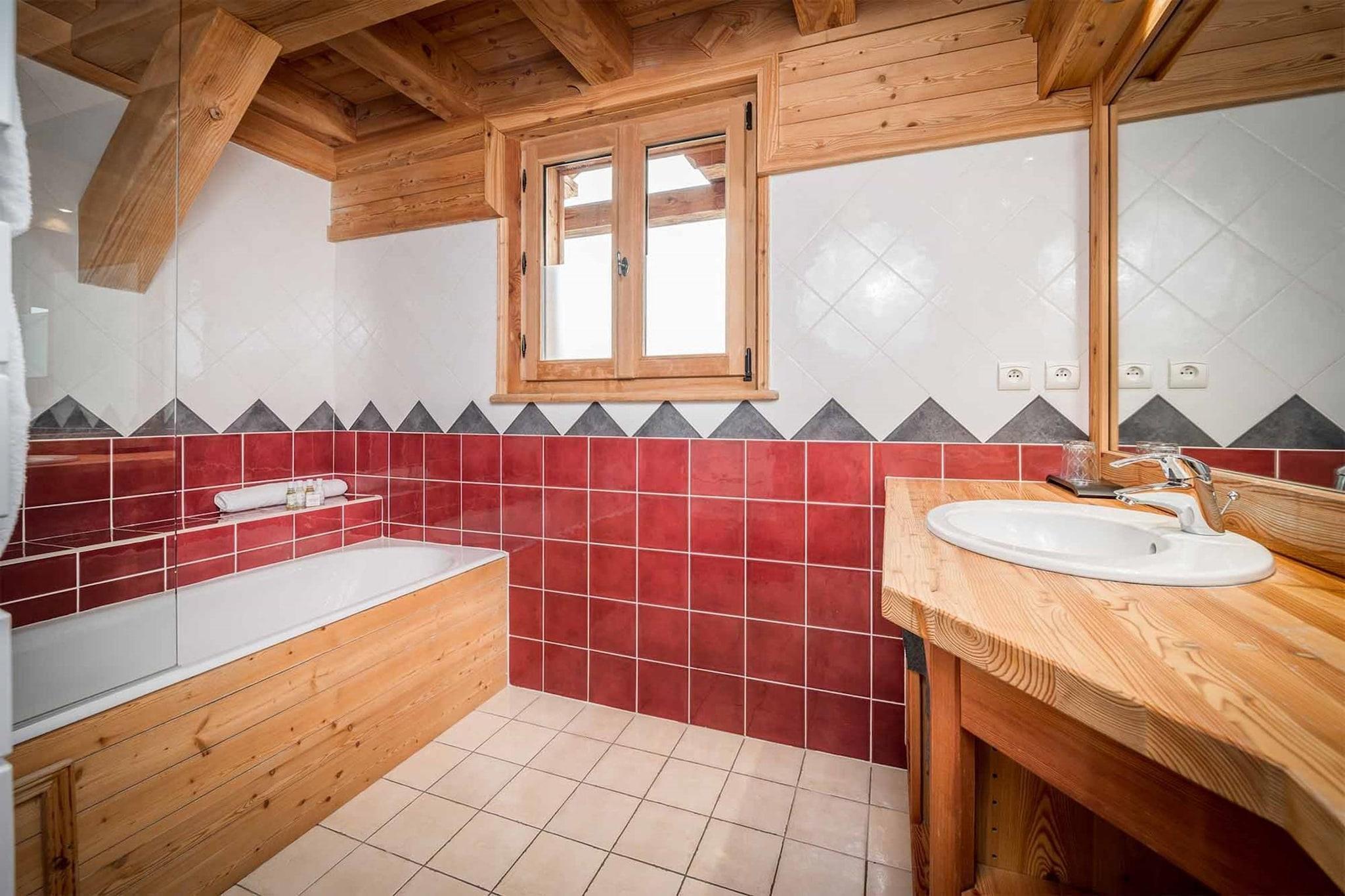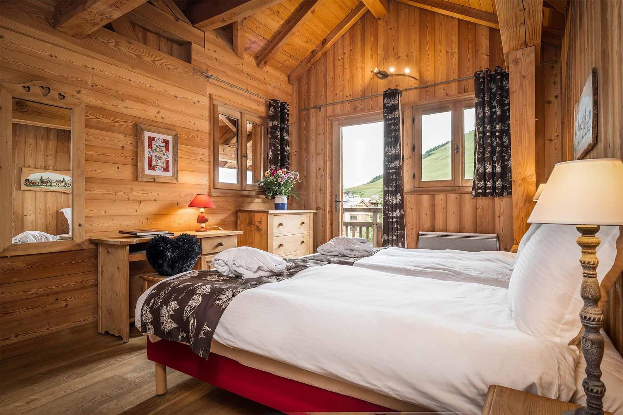 Med to pister på hver side af hytten er det det perfekte sted at starte på ski med det samme om morgenen. Landsbyens centrum ligger kun 10 minutters gang væk og byder på en livlig atmosfære med mange barer, restauranter og butikker, samt en skøjtebane og swimmingpool. Hvis du ikke vil gå hele vejen til landsbyen, kan du tage luftruten med en gondol, der tager dig til forskellige steder i skiområdet. Det indre af hytten er kærligt designet med sten- og trævægge i overensstemmelse med klassisk alpearkitektur samt høje hvælvede lofter. Hytten er fordelt på 4 etager og har 7 soveværelser, hver med eget badeværelse og direkte adgang til en balkon. Køkkenet støder op til den åbne plan stue og spisestue, med en stor stenpejs som omdrejningspunkt i rummet. Pejsen er omgivet af en stor hjørnesofa, som tilbyder et behageligt sted at slappe af, mens du ser tv eller spiller kort med familie eller venner. I spisepladsen er der et flot massivt træbord, hvor alle gæster kan sidde. Der er WIFI i hele hytten, og for dem, der ankommer i bil, er der en overdækket underjordisk parkeringsplads.
