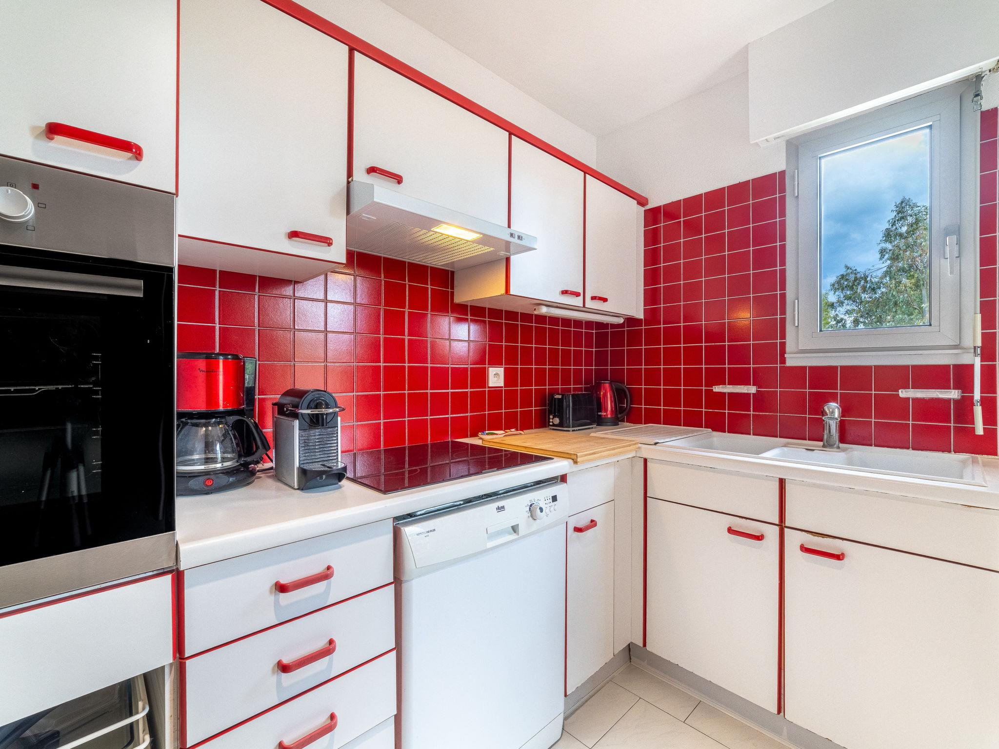3-room apartment 62 m2 on 1st floor. Bright, very comfortable and beautiful furnishings: living/dining room with TV (flat screen). Exit to the terrace. 1 room with 1 french bed (160 cm, length 200 cm), fan. 1 room with 2 beds (90 cm, length 190 cm). Kitchen (dishwasher, 4 ceramic glass hob hotplates, toaster, kettle, microwave, freezer, electric coffee machine). Bathroom, sep. WC. Electric heating. Terrace 5 m2. Terrace furniture. View of. Facilities: washing machine, hair dryer. Internet (WiFi, free). Blu-ray player. Parking space n 95 (fenced). Please note: suitable for families. Non-smokers only. TV only FR. Smoke alarm. Offer by a commercial proprietor according to Art. 155, IV, CGI