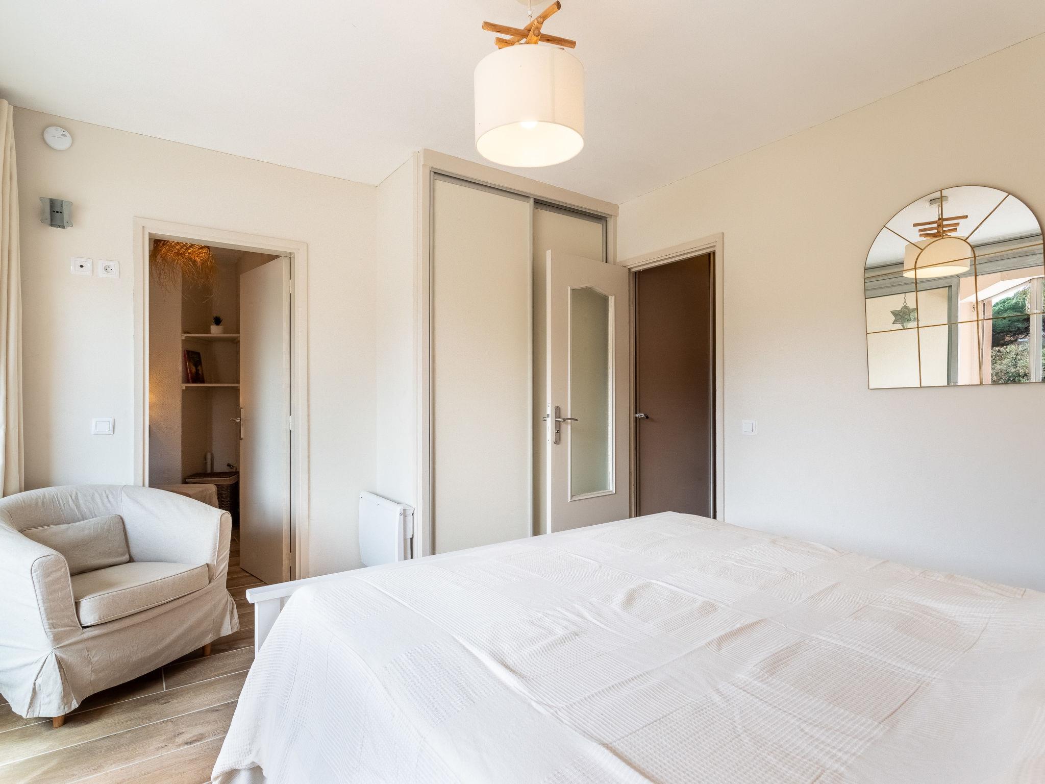 3-room apartment 59 m2 on 2nd floor. Spacious and bright, renovated in 2024, very beautiful furnishings: living/dining room with 1 double sofabed (140 cm, length 200 cm), TV (flat screen). Exit to the balcony. 1 room with 1 french bed (160 cm, length 200 cm). Exit to the balcony. Interconnecting room with 1 bed (90 cm, length 190 cm). Open kitchen (oven, dishwasher, 4 induction hot plates, toaster, kettle, freezer, electric coffee machine). Shower, sep. WC. Electric heating, boiler (100 litres). Balcony 11 m2. Balcony furniture. Beautiful view of the swimming pool. Facilities: washing machine. Internet (WiFi, free). Please note: TV only FR. Smoke alarm.