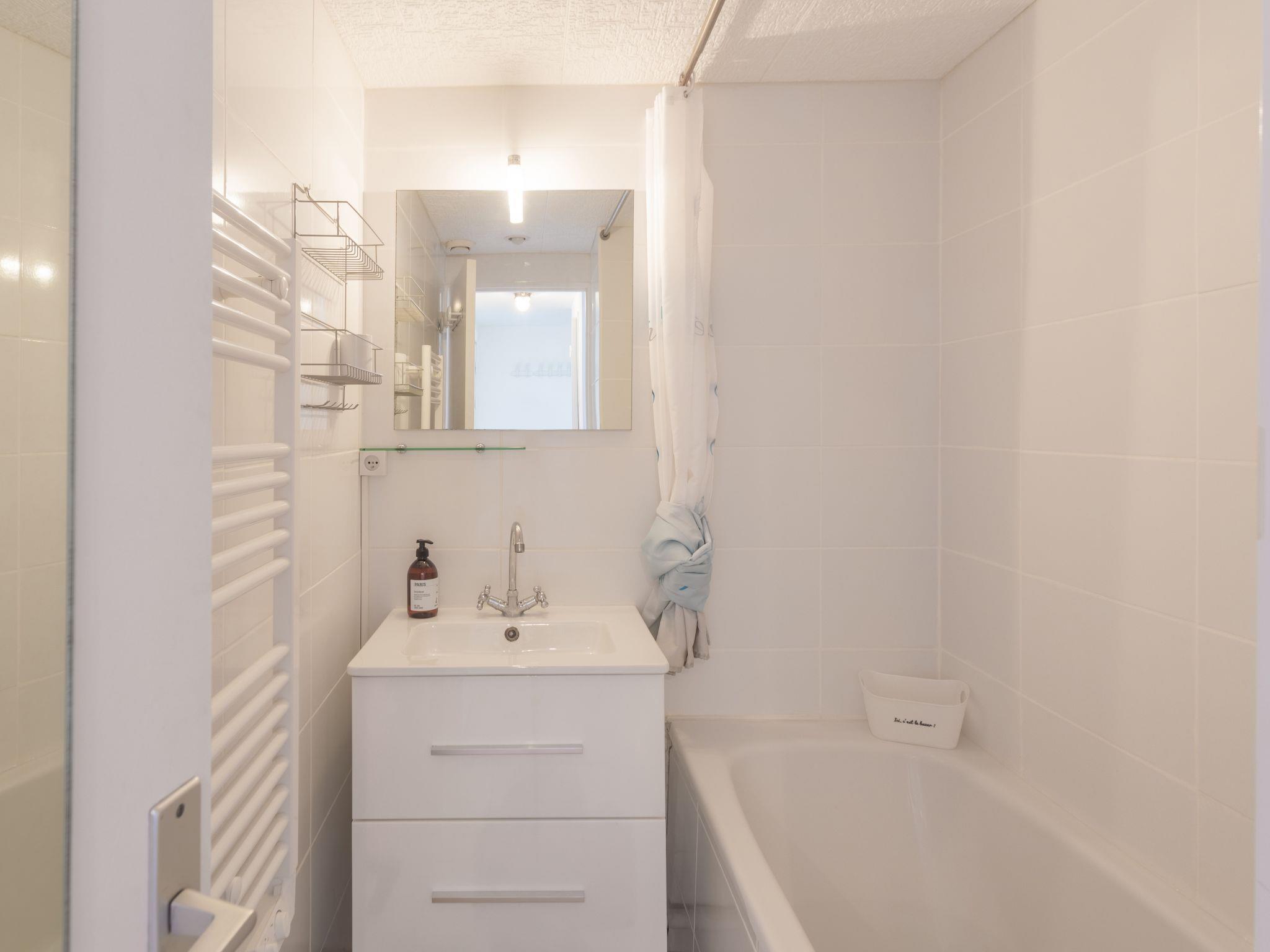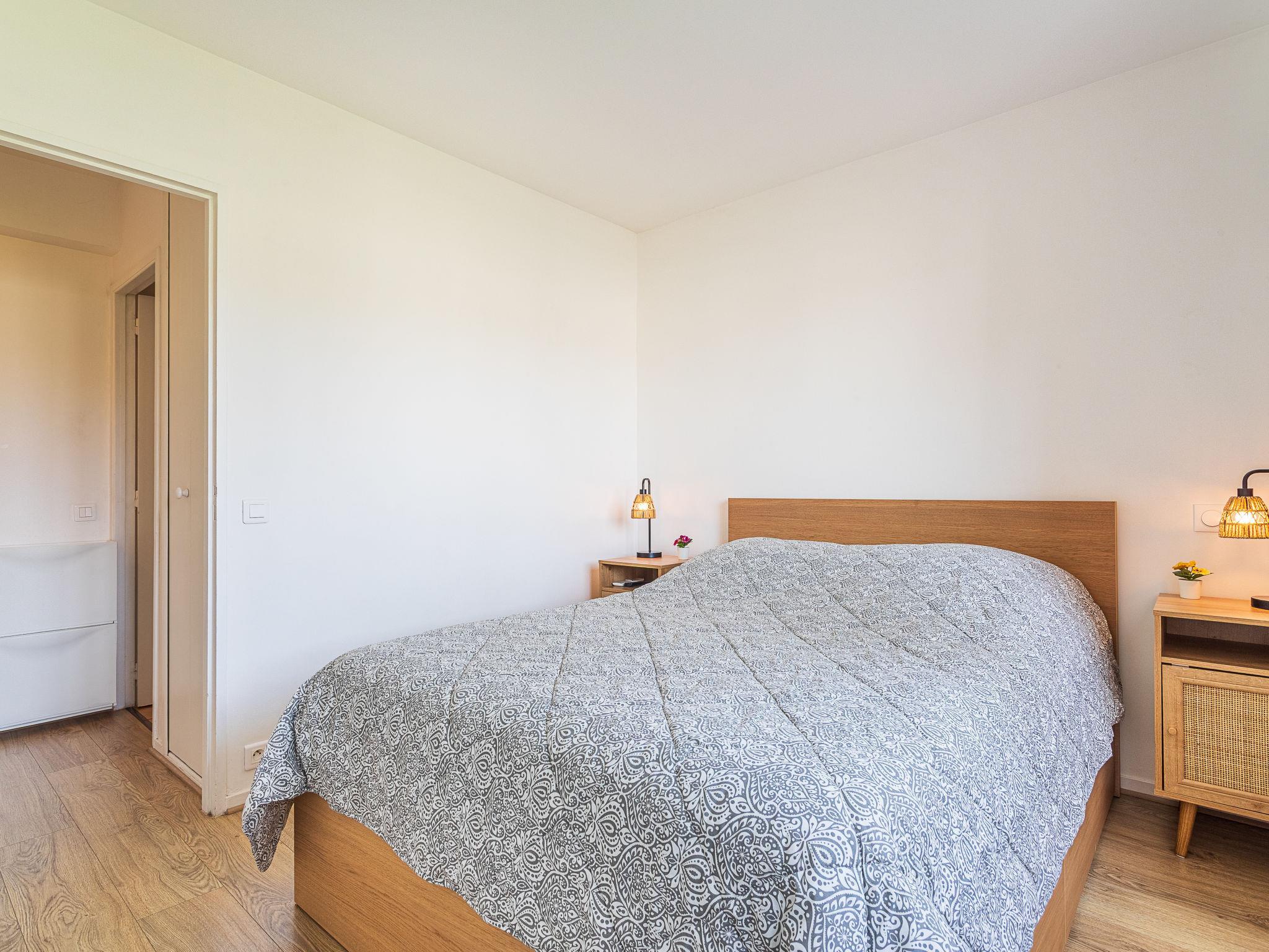 2-room apartment 33 m2 on 3rd floor. Bright, fully renovated in 2021, comfortable and beautiful furnishings: living/sleeping room with 1 sofabed (140 cm, length 190 cm), TV (flat screen). Exit to the terrace. 1 room with 1 french bed (140 cm, length 190 cm), TV (flat screen). Kitchenette (dishwasher, 4 ceramic glass hob hotplates, toaster, kettle, microwave, freezer, electric coffee machine). Bathroom, sep. WC. Electric heating, air-conditioning. Terrace 7 m2. Terrace furniture. View of the garden. Facilities: washing machine. Internet (WiFi, extra). Please note: TV only FR. Smoke alarm.
