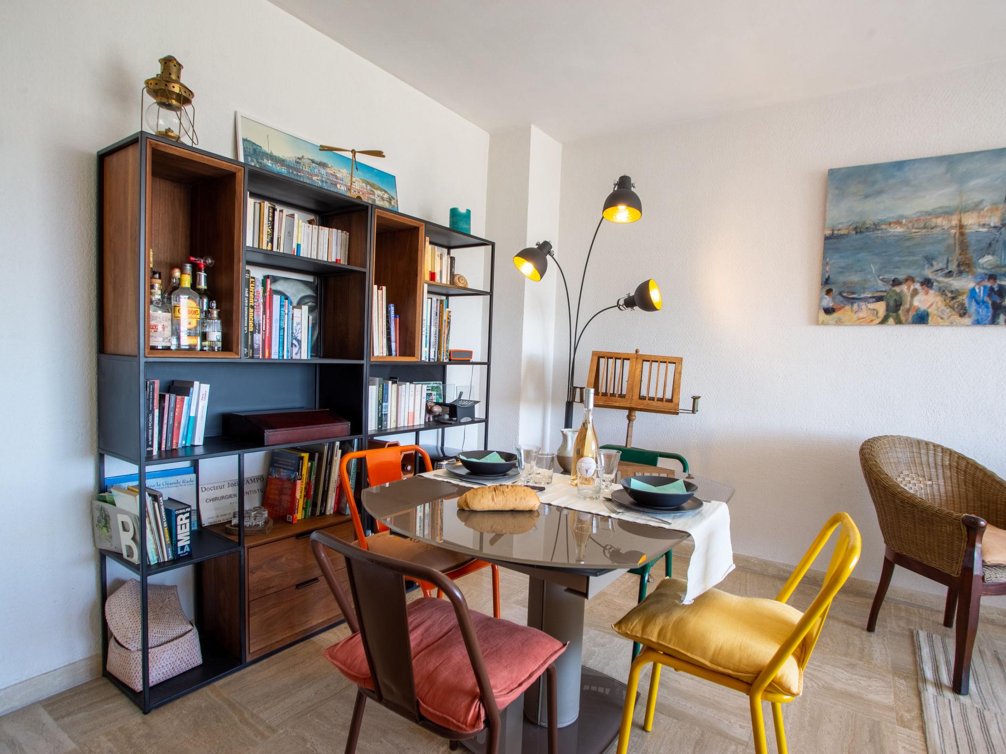 "Le Clinfoc", 2-room apartment 48 m2 on 5th floor. Living/dining room with 1 double sofabed (140 cm, length 190 cm), TV (flat screen), DVD. Exit to the loggia. 1 room with 1 french bed (160 cm, length 190 cm). Kitchen (dishwasher, 4 ceramic glass hob hotplates, toaster, kettle, microwave, freezer, electric coffee machine). Bathroom, sep. WC. Heating. Very beautiful view of the sea and the port. Facilities: washing machine, iron. Internet (WiFi, free). Parking space n 892 environ 75 M. Please note: TV only FR. Smoke alarm. Offer by a private individual according to Art. 155, IV of CGI.