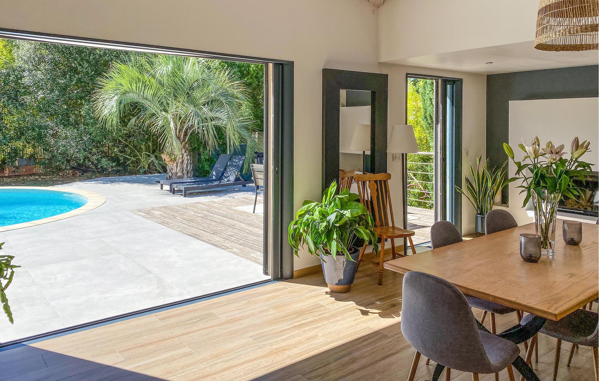 Dette skønne feriehus med egen pool findes i Hyéres, kun 200 m fra en kiesstrand og 500 m fra en sandstrand. Her er det muligt at nyde solen både for sig selv og ved Middelhavets strande. I dette komfortable og veludstyrede feriehus har I rammerne for en feri med afslapning og ro men også masser af muligheder for udflugter og aktiviteter. Soveværelserne har egne badeværelser og der er desuden en stor have I kan boltre jer på og ikke mindst tage et par forfriskende dukkerter i løbet af dagen. Nede ved stranden kan I prøve kræfter med forskellige vandsportsdiscipliner som dykning, jetski eller sejlsport. Inde i Hyéres er der en malerisk gammel midtby hvor en dejlig spadseretur i de små gyder kan anbefales. Byens gamle borg og tempelriddernes tårn er ligeledes et besøg værd. En gammel saltrute udgør deuden en skøn vandresti hvor I kan opleve den provencalske natur tæt på. Det gælder også halvøen Gien der også byder på paradisiske landskaber og klippefremspring - I kan følge en sti langs kysten. Børnene kan se frem til et besøg i Aquavillage eller Kiddy Parc.
