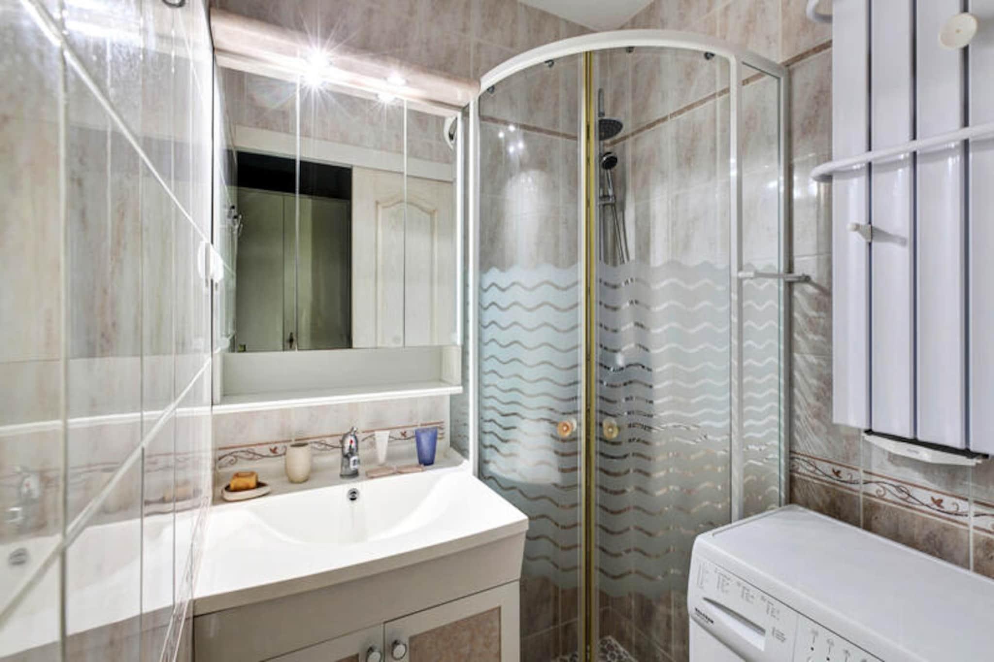 Beliggende på en 3-hektar skovklædt halvø i hjertet af Giens-halvøen, tilbyder denne to-etagers lejlighed en rolig flugt midt i et naturligt miljø. Lejligheden har en stue med en dobbelt sovesofa, en enkelt sovesofa, et soveværelse med en dobbeltseng, et badeværelse med separat toilet, et køkkenområde og en terrasse med udsigt over haven. Lejligheden har plads til op til fem gæster, og kæledyr er tilladt mod et ekstra gebyr. Gæsterne kan nyde gratis parkering uden for boligen. Boligen har en privilegeret beliggenhed, et stenkast fra en smuk strand og kun 2 km fra landsbyen. Det omkringliggende område byder på forskellige aktiviteter for alle interesser, herunder en golfbane (20 km væk), et ridecenter (8 km væk), en tennisklub (4 km væk) og et fritidscenter med vandsport og en zoologisk have. Det nærliggende beskyttede naturområde og sandstranden er perfekte til afslapning og udforskning. Lejligheden har et halvåbent køkken, aircondition og tv. Wi-Fi-adgang, leje af babysæt, håndklæder og slutrengøring er alle tilgængelige mod et ekstra gebyr. Gæsterne har gratis adgang til boligens udendørs swimmingpool, der er opvarmet fra maj til oktober.