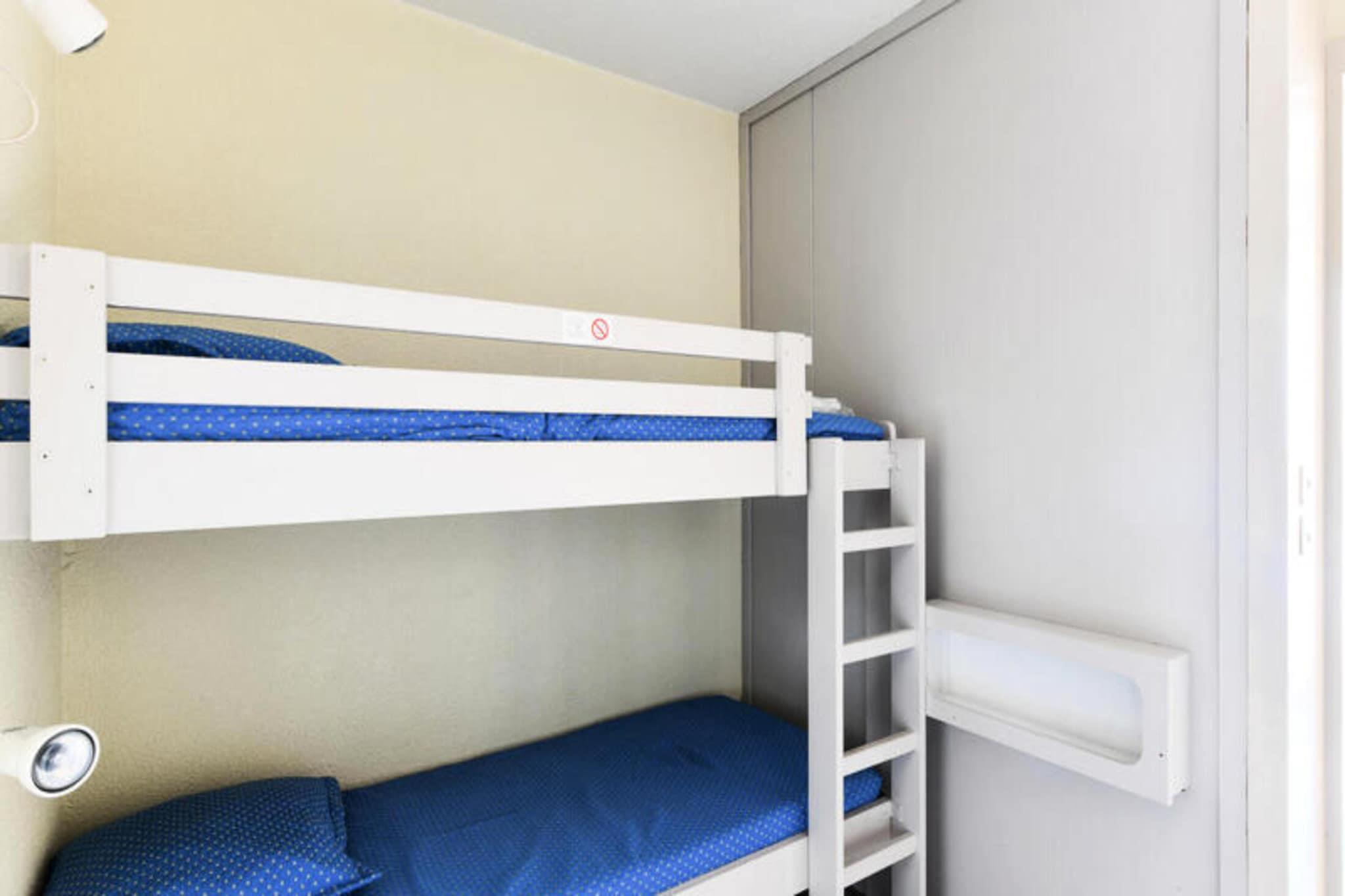 Denne duplex-lejlighed, som ligger 300 m fra stranden, kan komfortabelt rumme op til seks gæster. Det har en stue med en sovesofa (sover to), en mezzanin med en dobbeltseng og et soveværelse med køjesenge. Kæledyr er tilladt mod et ekstra gebyr. Lejligheden har to terrasser, et 20m² solarium og en reserveret overdækket parkeringsplads. Beliggende i Hyères-Les-Palmiers, er denne lejlighed ideelt placeret for at udforske Middelhavskysten. Det er 150 m fra lystbådehavnen, butikkerne og Hippodromen og byder på udsigt over De Gyldne Øer (Porquerolles, Port-Cros og Le Levant). Placeringen er populær blandt cyklister og sejlere og er tæt på en børnepark. Lejligheden har et køkkenområde, der er åbent til stuen, udstyret med de nødvendige faciliteter. Der er et badeværelse med badekar og toilet. Sengelinned og håndklæder er tilgængelige mod et tillægsgebyr, ligesom slutrengøring (obligatorisk, betales ved indtjekning). Børnepasning er også tilgængelige mod et ekstra gebyr, afhængigt af tilgængelighed. Der er tv.