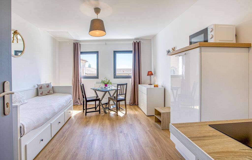 Denne charmerende ferielejlighed er noget særligt med sin funktionelle indretning og venlige atmosfære. De lyse værelser med rene linjer og diskrete farver tilbyder en smuk ramme for afslappende ferier. Brug opholdsstuen til at læse eller slappe af og nyde dagens måltider ved det lille spisebord.