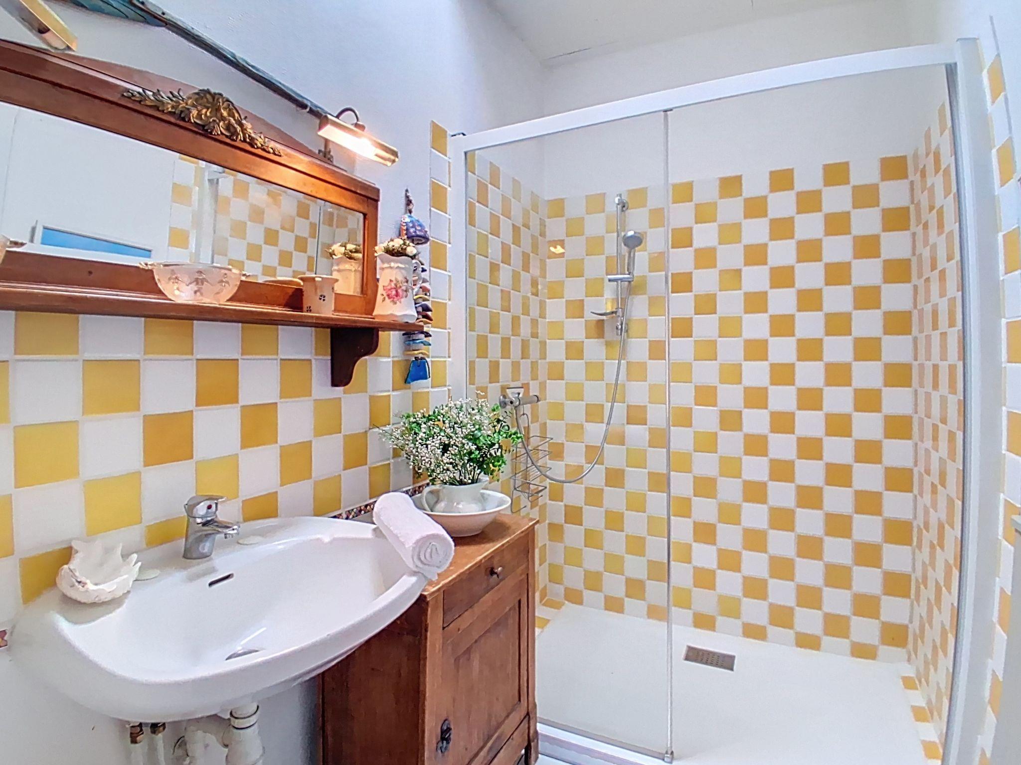 "La Coti 2", 5-room terraced house 95 m2. Simple and comfortable furnishings: living/dining room with TV (flat screen). Exit to the terrace. 1 room with 1 french bed (1 x 140 cm, length 190 cm). 1 room with 1 french bed (1 x 140 cm, length 190 cm). 1 room with 1 french bed (1 x 140 cm, length 190 cm). 1 children's room with 1 bed (90 cm, length 190 cm), 1 double bed (1 x 140 cm, length 190 cm). Open kitchen (oven, dishwasher, 4 induction hot plates, toaster, kettle, microwave, freezer, electric coffee machine). Exit to the terrace. 2 bathrooms, 2 sep. WC's. Electric heating. Large terrace 80 m2. Terrace furniture, barbecue. Facilities: washing machine, hair dryer. Internet (WiFi, extra). Please note: non-smoking house, no parking. Maximum 1 small pet/ dog allowed. Smoke alarm. Offer by a private individual according to Art. 155, IV of CGI. 173850012340C