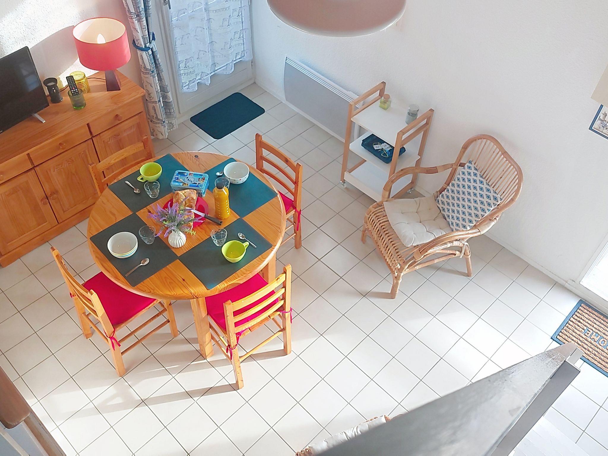 "Le Hameau", 2-room apartment 26 m2 on 1st floor. Living/dining room with TV (flat screen). Exit to the terrace. 1 room with 1 french bed (1 x 140 cm, length 190 cm). Gallery with 2 beds (90 cm, length 190 cm). Small kitchen (oven, 2 ceramic glass hob hotplates, toaster, kettle, microwave, electric coffee machine). Shower, sep. WC. Electric heating. Terrace 5 m2. Terrace furniture. Facilities: washing machine, hair dryer. Parking at the house. Please note: non-smokers only. Smoke alarm. Offer by a private individual according to Art. 155, IV of CGI. 17140000031CB