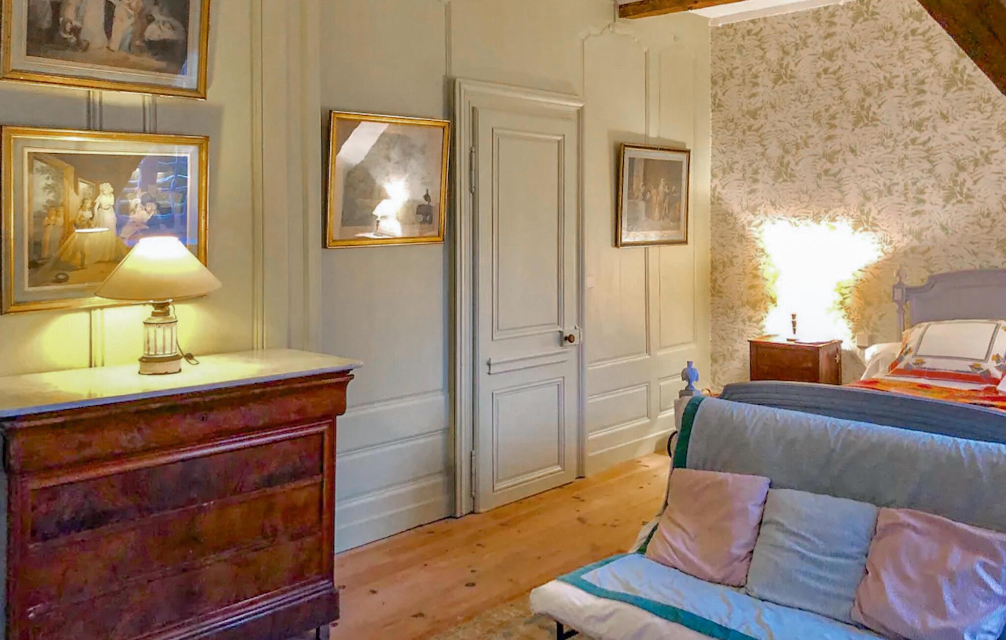 Lad jer fortrylle af det historiske miljø i denne kærligt restaurerede ejendom fra det 17. århundrede. Træd indenfor og mærk den unikke atmosfære, skabt af elegante træpaneler, kunstfærdigt dekorerede vægge og den storslåede pejs. Nyd hyggelige aftener i den stilfulde stue, prøv kræfter med franske opskrifter i det rummelige landkøkken, og afslut dagen med et glas vin i den imponerende spisestue.