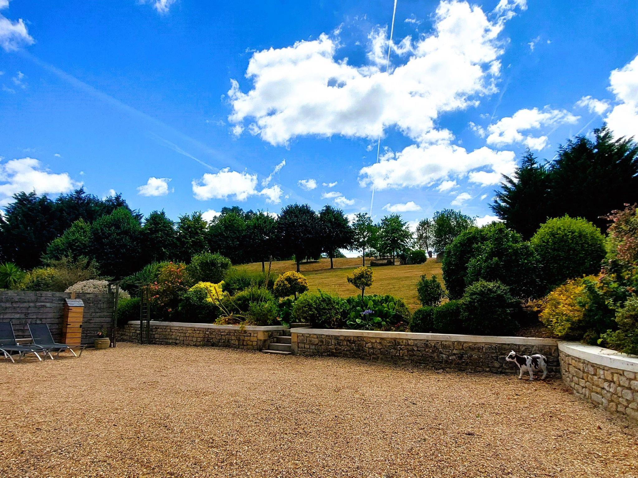 You can enjoy a very peaceful environment, with a large enclosed garden not overlooked, a view of the Bessin marshes to the north, and to the south, at the top of the property, fields with Norman cows and a view of the village church.