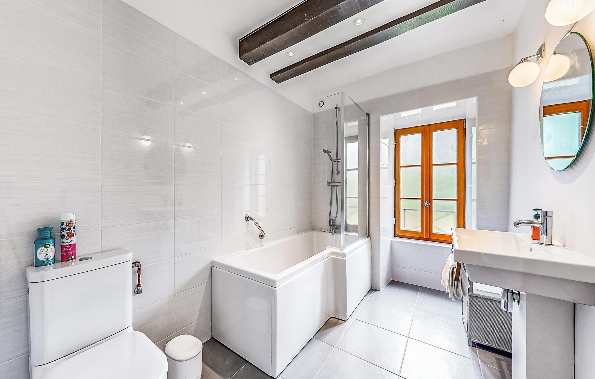 Badeværelse (nr. 1) - WC. Varmt og koldt vand. Bruser og badekar
