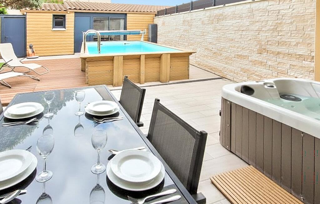 Oplev en afslappende ferie i dette feriehus med pool og spabad.