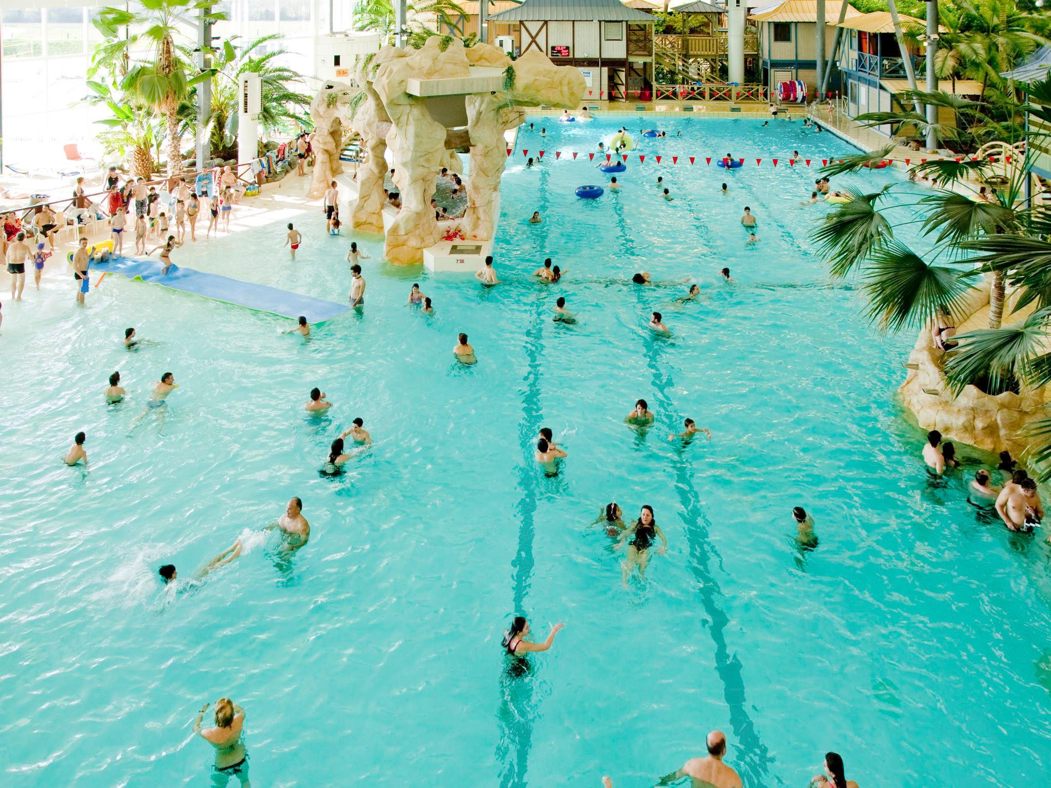 Modern resort "Les Coteaux de Jonzac", 3 storeys, built in 2018. 90 apartments in the property. 1.3 km from the centre of Jonzac, 34 km from the centre of Cognac, 64 km from the centre of Royan. In the house: reception, lift, washing machine, tumble dryer (for shared use, extra). Bread roll service. Parking. Supermarket 2.5 km, restaurant, bar, outdoor swimming pool, indoor swimming pool 200 m. Nearby attractions: adventure pool Les Antilles de Jonzac 200 m, thermes de Jonzac 1.5 km. The photo is just an example. The holiday properties may differ in living space, floorplan, equipment and furnishing. Guests benefit from free access to the adventure pool "Les Antilles de Jonzac" (open from 01/01 to 31/12) with 1 entry per person for a stay of 2 days/1 night, 2 entries for 3 days/2 nights and 3 entries for 4 days/3 nights.
