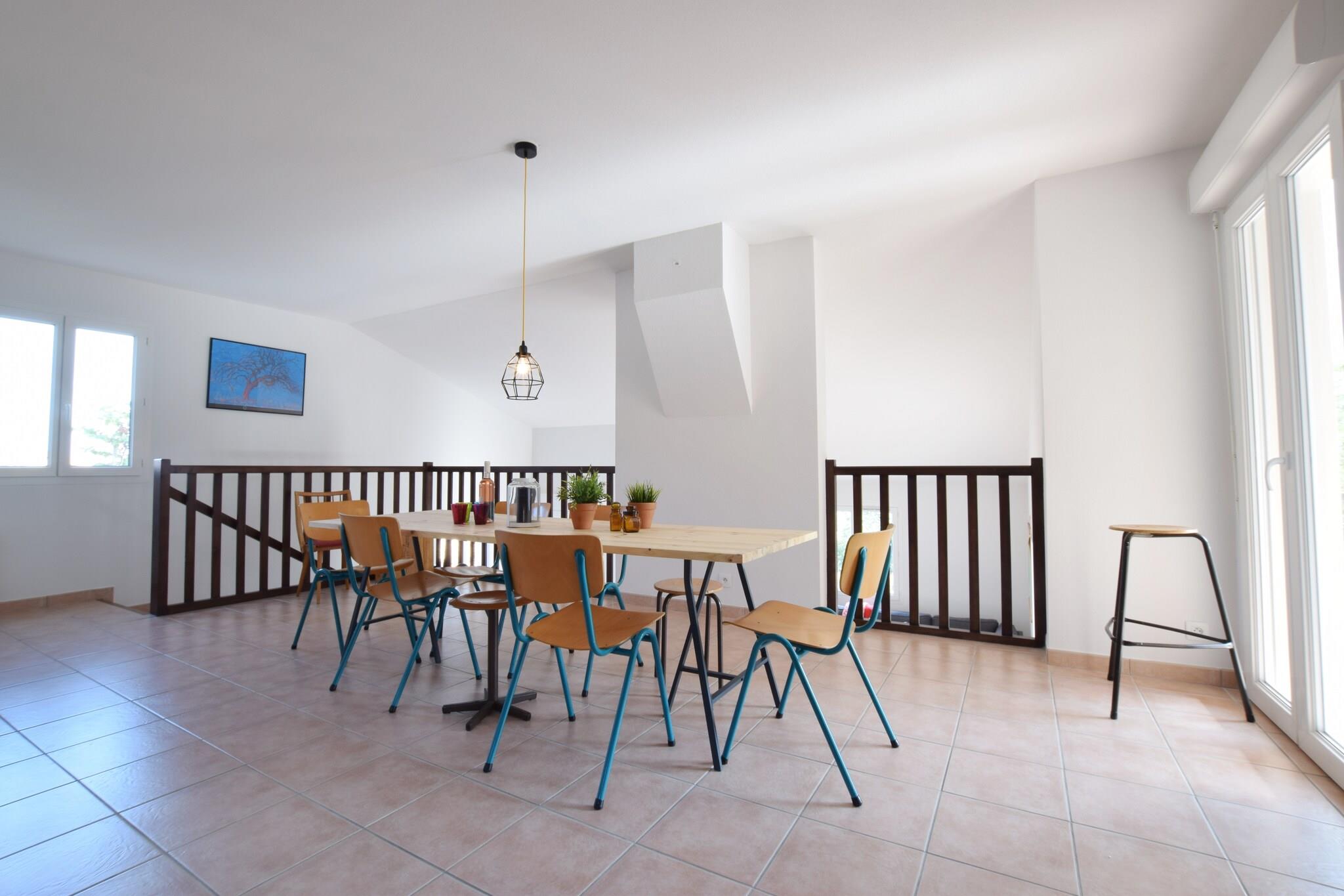 Beliggende i den fredfyldte landsby Joyeuse tilbyder denne charmerende villa et rummeligt tilflugtssted for op til 6 gæster. Stueetagen har et veludstyret åbent køkken, indbydende spiseplads, et hyggeligt soveværelse med dobbeltseng og to badeværelser, inklusive et afslappende badekar. Træd op til mezzaninen, hvor en komfortabel stue med pejs og tv venter, perfekt til rolige aftener. Ovenpå finder du to soveværelser med 2 enkeltsenge og et ekstra badeværelse, hvilket gør det ideelt for familier eller grupper. Villaen har moderne bekvemmeligheder som varme, gratis Wi-Fi, havemøbler og privat parkering. Udendørs lokker den private pool - åben fra maj til september - sammen med liggestole og en skyggefuld parasol til afslappede eftermiddage. Beliggende kun få minutter fra tennis, golf, lokale restauranter og bagerier, blander villaen fred på landet med nærliggende aktiviteter. Uanset om du nyder croissanter fra den lokale boulangerie eller slapper af på terrassen, fanger dette tilflugtssted essensen af Ardèche-charme.