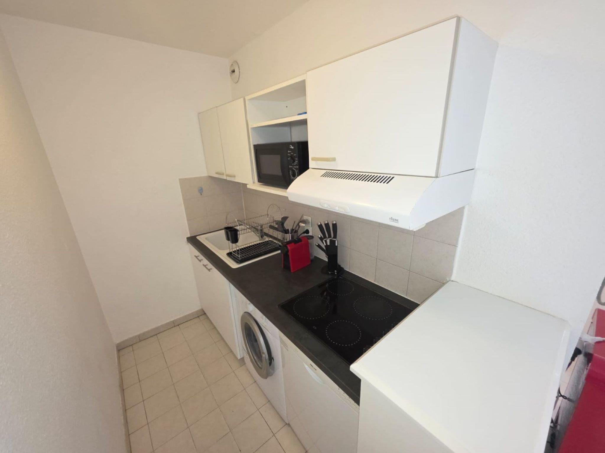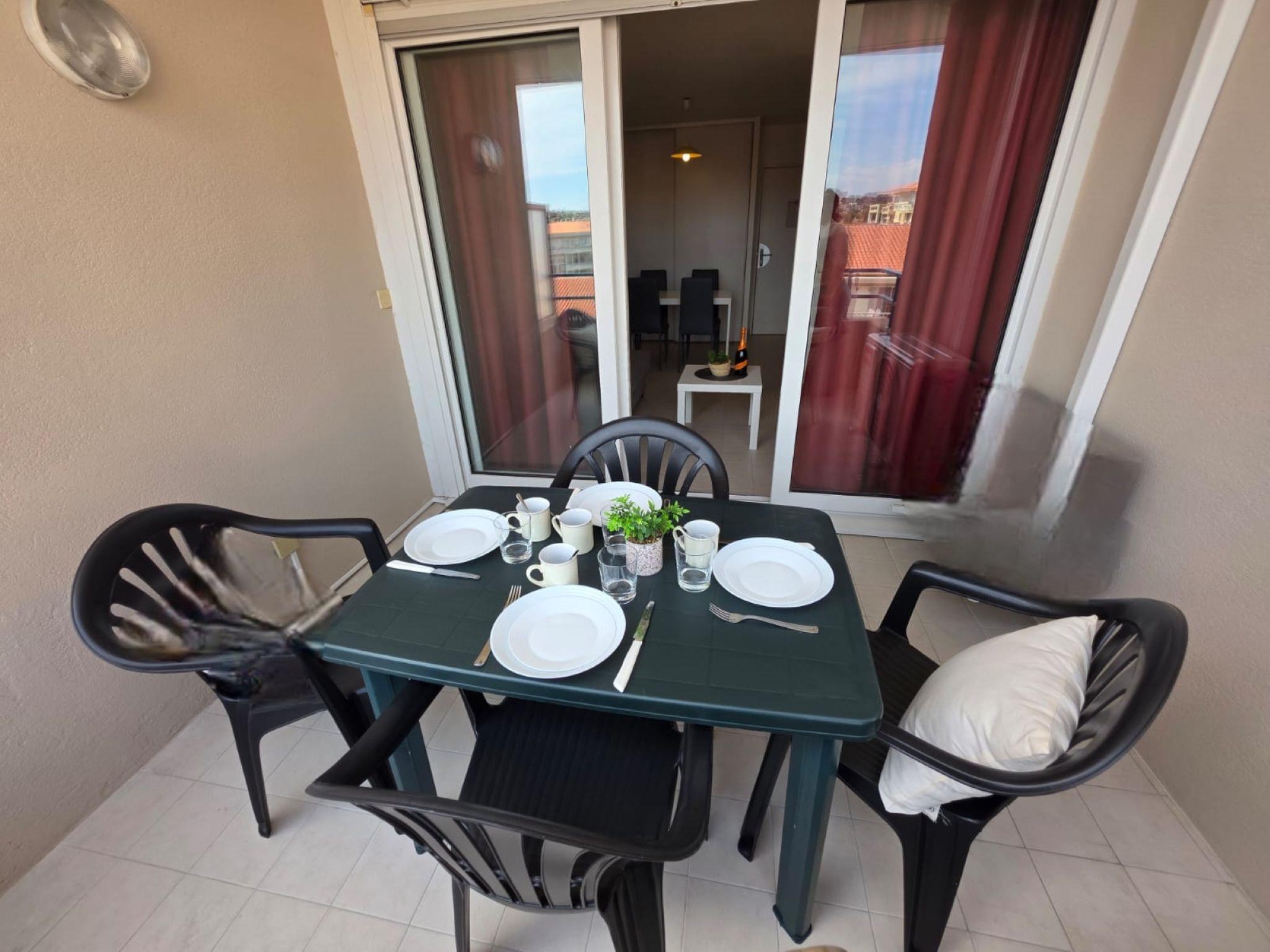 2-room apartment 34 m2 on 4th floor. Partly in 2025, comfortable furnishings: living/dining room with panoramic window with 1 double sofabed (140 cm, length 190 cm), TV (flat screen), air conditioning. Exit to the terrace. 1 room with 1 french bed (1 x 160 cm, length 200 cm), air conditioning. Exit to the terrace. Open kitchen (dishwasher, 4 ceramic glass hob hotplates, toaster, kettle, microwave, electric coffee machine). Exit to the terrace. Bathroom, sep. WC. Air-conditioning, forced-air heating. Terrace 8 m2, north facing position. Terrace furniture. Facilities: washing machine, hair dryer. Internet (WiFi, free). Please note: non-smokers only. Smoke alarm. Offer by a private individual according to Art. 155, IV of CGI. 06 004 22 710 0 CM