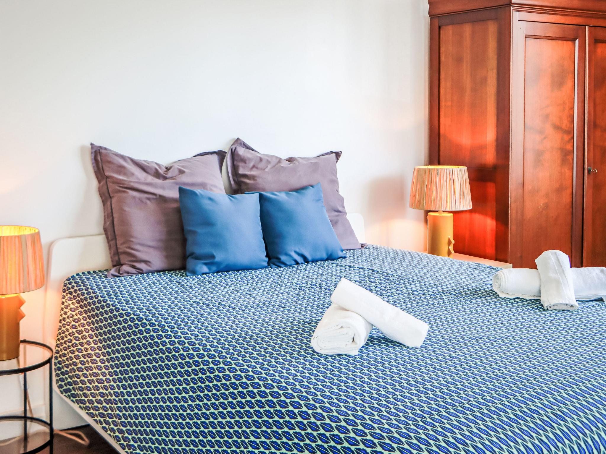 "Au soleil bleu", 3-room apartment 100 m2 on 1st floor. Spacious and bright, very beautiful furnishings: large living/dining room with 1 double sofabed (160 cm, length 190 cm), TV (flat screen), air conditioning. Exit to the balcony. 2 large rooms, each room with 1 french bed (160 cm, length 200 cm), air conditioning. Kitchen (oven, dishwasher, 3 induction hot plates, toaster, kettle, microwave, freezer, electric coffee machine). Exit to the balcony. Bathroom, bath/WC, sep. WC. Gas heating. Balcony 17 m2, east facing position. Facilities: washing machine, iron, hair dryer. Internet (WiFi, free). Garage. Please note: smoke alarm. Offer by a private individual according to Art. 155, IV of CGI. 06004251363CM