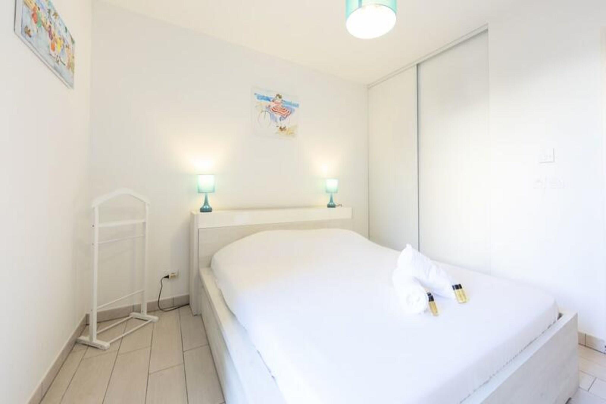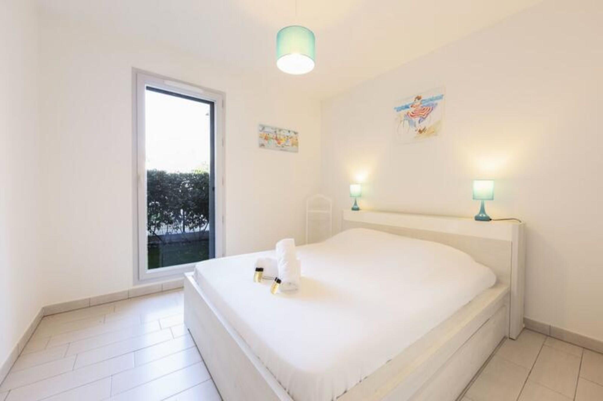 Denne moderne lejlighed i stueetagen er beliggende i en sikker, nybygget bolig og tilbyder komfortabel indkvartering for op til 4 gæster. Lejligheden har et soveværelse med en dobbeltseng, en stue med en sovesofa til to, et spisebord og et fladskærms-tv. Det er fuldt udstyret med aircondition og gratis trådløs internetadgang. Kæledyr er ikke tilladt, hvilket sikrer et fredeligt miljø for alle gæster. Sengetøj, håndklæder og toiletartikler leveres, og rengøring er inkluderet i lejeprisen. Der kræves et depositum på 400 EURO ved ankomst. Beliggende kun 400 meter fra hjertet af Juan-les-Pins og 600 meter fra stranden, er lejligheden perfekt placeret for dem, der ønsker at udforske det pulserende område. Du kan nemt få adgang til et bredt udvalg af butikker, caféer og restauranter inden for gåafstand. Den berømte Cap d'Antibes er også i nærheden, og tilbyder private strande og naturreservater at udforske. For nemheds skyld ligger SNCF-stationen kun 5 minutters gang væk, og lejligheden ligger også en kort køretur fra motorvej A8 og lufthavnen. Lejligheden har et fuldt udstyret køkken i åbent plan, så gæsterne kan tilberede måltider komfortabelt. En rummelig 30 m² terrasse på haveniveau er perfekt til udendørs spisning og inkluderer en grill til fornøjelige måltider under åben himmel. Gæsterne har også adgang til boligens sikre swimmingpool og en parkeringsplads i kælderen, hvilket bidrager til bekvemmeligheden ved denne førsteklasses beliggenhed.