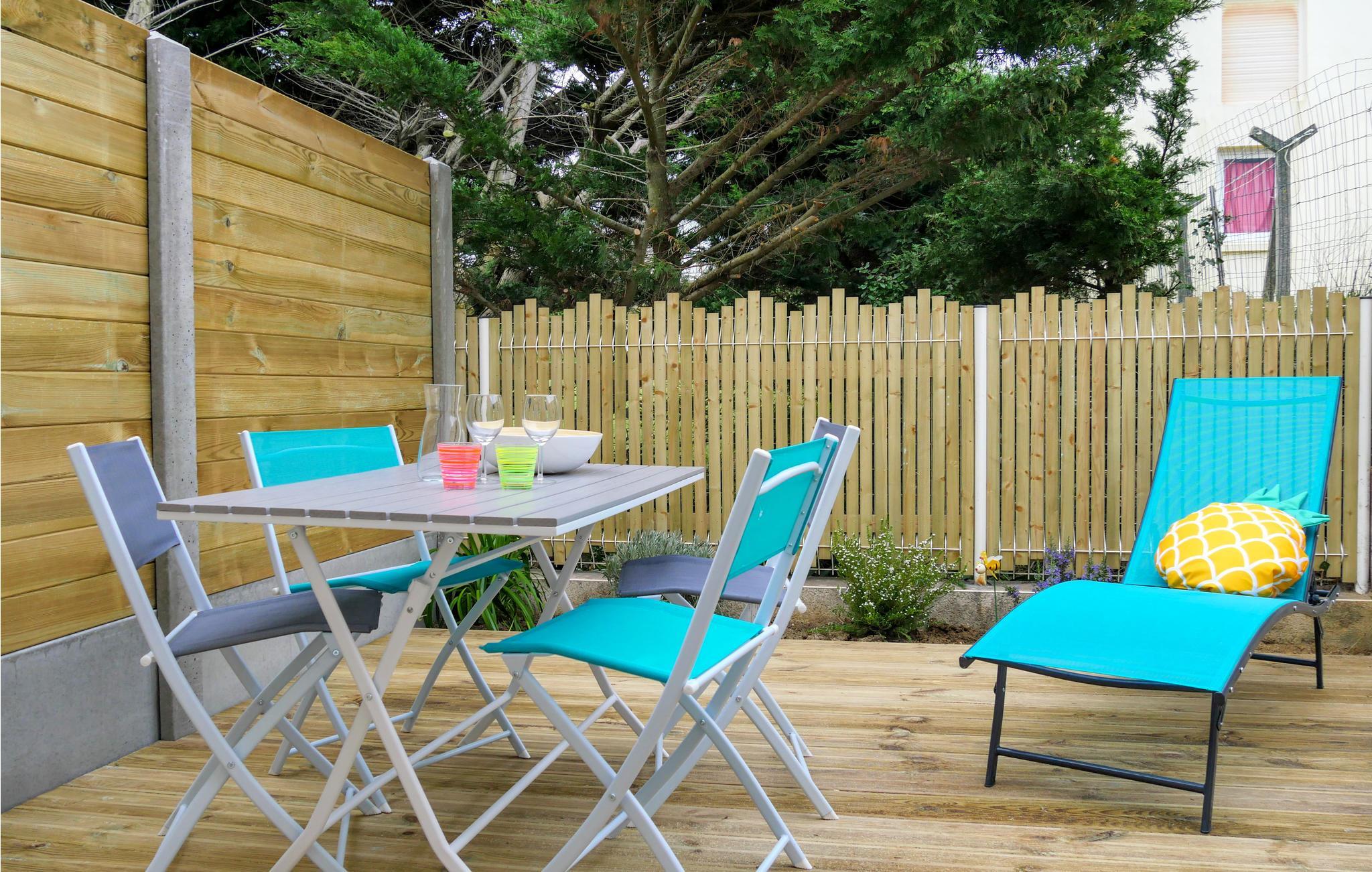 Flot lejlighed med terrasse og vidunderlig havudsigt, kun 70 m fra Jullouville-stranden.