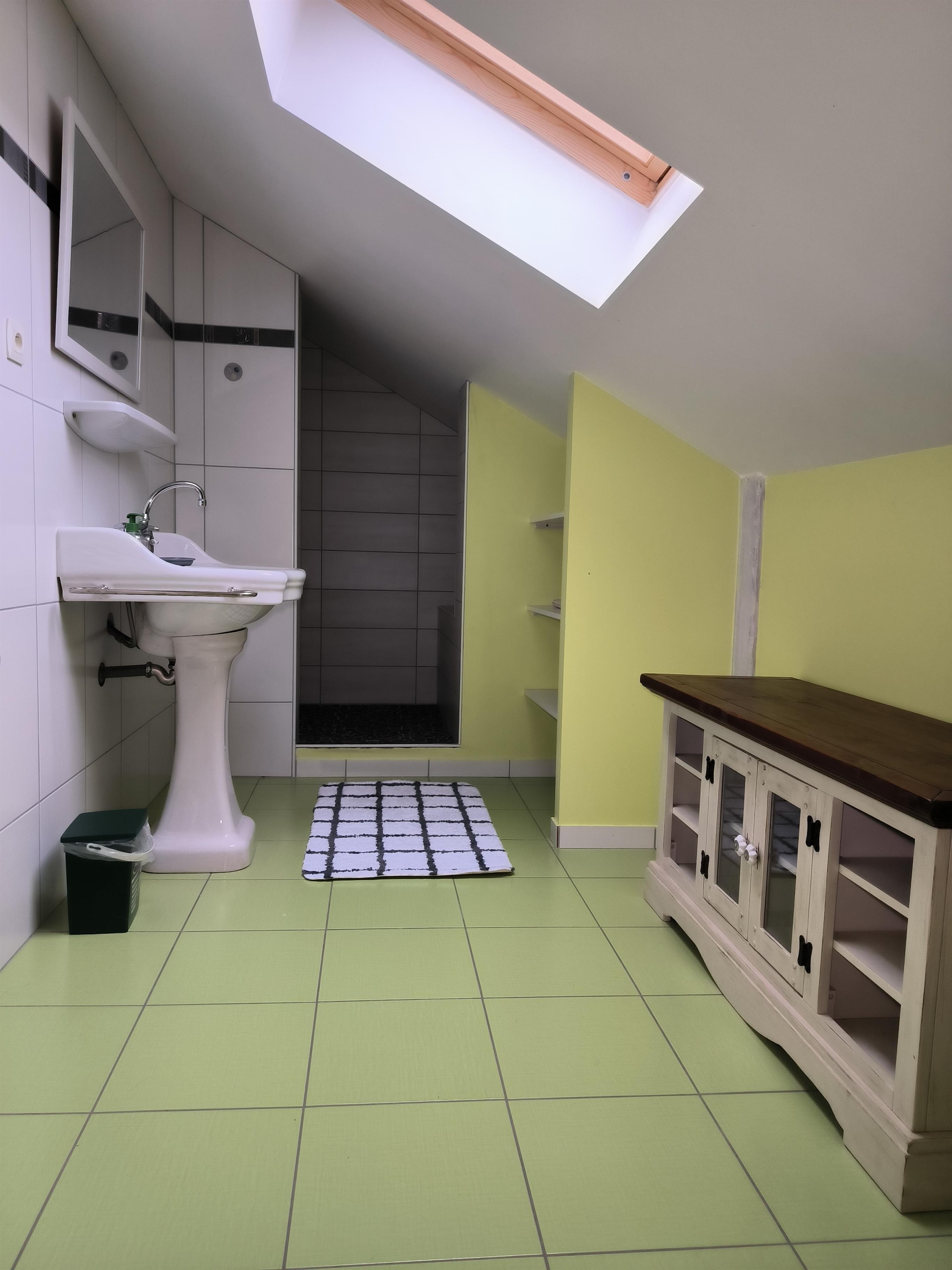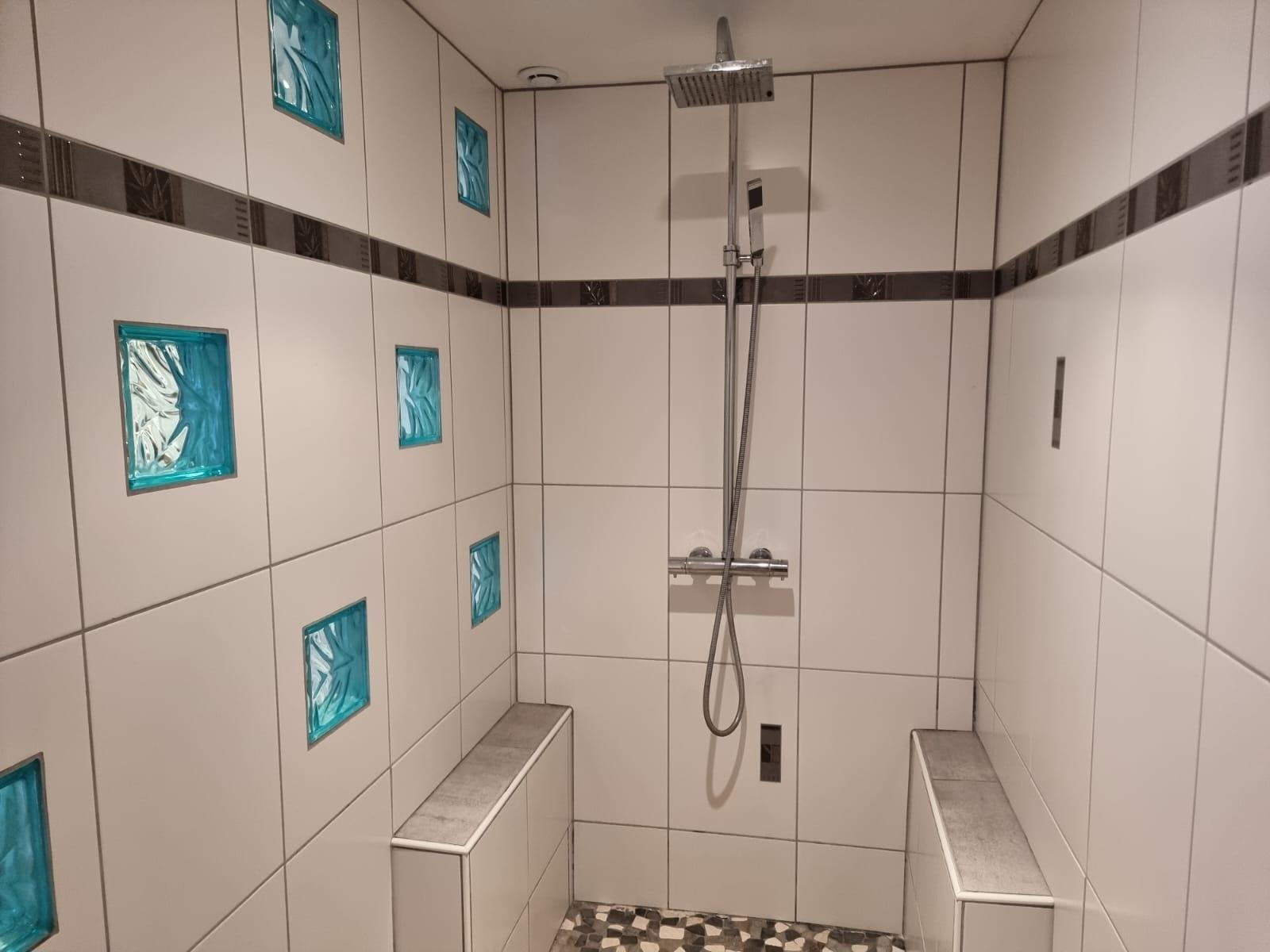 Badeværelse med bruser og badekar