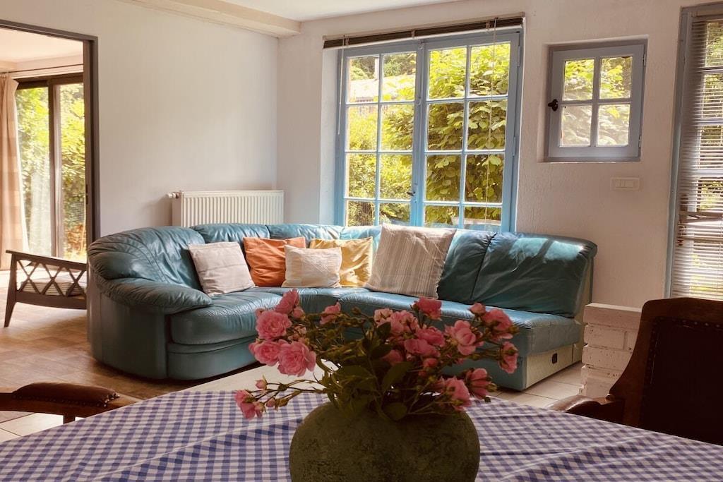Feriehuset vender ud mod haven, som kan prale af et par romantiske, naturlige terrasser. Der er parkering for enden af den lille sti, der fører til havehegnet. Der er en udendørs pejs til grill eller bål. Det er meget tæt på Colmar, men stadig meget roligt. Feriehuset har to soveværelser, et med en dobbeltseng og et med en enkeltseng. Der er også køkken, badeværelse, separat toilet og en lys opholdsstue.