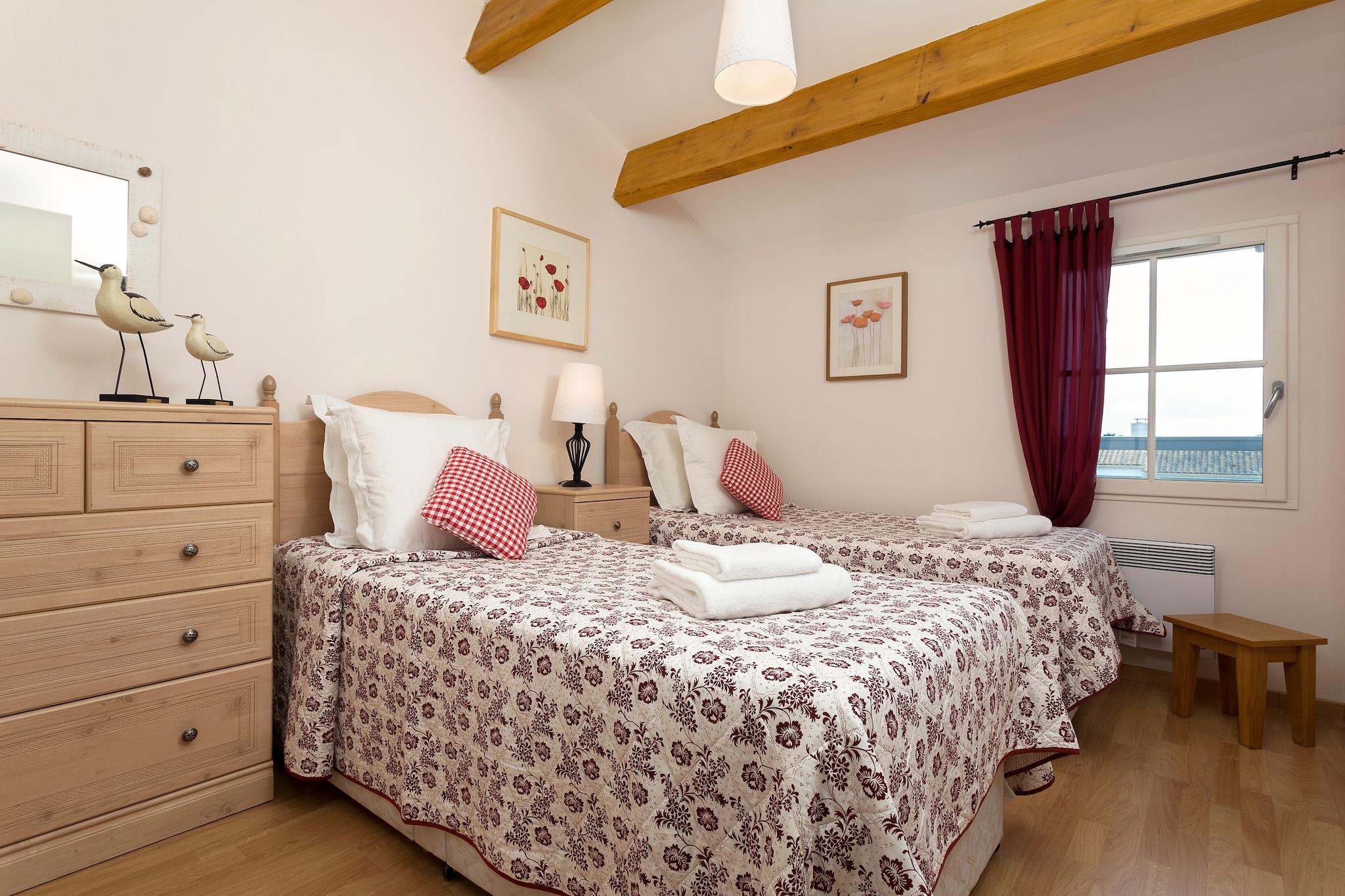 Le Domaine de Fontenelles tilbyder et fantastisk udvalg af rækkehuse, rummelige villaer og hyggelige lejligheder beliggende i et fredeligt tilflugtssted på landet. Uanset om du slapper af på en privat terrasse eller tager en dukkert i din private eller fælles pool, vil du nyde moderne bekvemmeligheder kombineret med naturskøn udsigt over frodige haver eller den nærliggende golfbane. Boligerne er smagfuldt indrettet med åbne køkkener og franske terrassedøre, der blander indendørs og udendørs ophold, perfekt til at slappe af efter en dag med udforskning. Beliggende i L'Aiguillon-sur-Vie inviterer denne fredfyldte lokalitet dig til at opdage charmerende landsbyer, bølgende vinmarker og sandstrande kun en kort køretur væk. For gæster, der rejser med kæledyr, byder det omkringliggende landskab på rigelige vandrestier og kæledyrsvenlige parker, hvor dine lodne venner kan strejfe frit rundt og nyde den friske luft. Den nærliggende kystlinje byder også på adskillige hundevenlige strande, ideelle til sprøjtfyldte eventyr og lange gåture ved havet. Den nærliggende landsby byder på hyggelige bistroer og livlige caféer, der serverer friske specialiteter fra Loiredalen, fra rustikke charcuteri-tavler til årstidens fiske- og skaldyrsretter. Lokale markeder er fyldt med provencalske råvarer, perfekt til en afslappet picnic på din villas terrasse. Gå ikke glip af restauranter som Le Bistro du Marché og La Table du Pêcheur, hvor det pulserende regionale køkken fanger essensen af det franske kystliv.