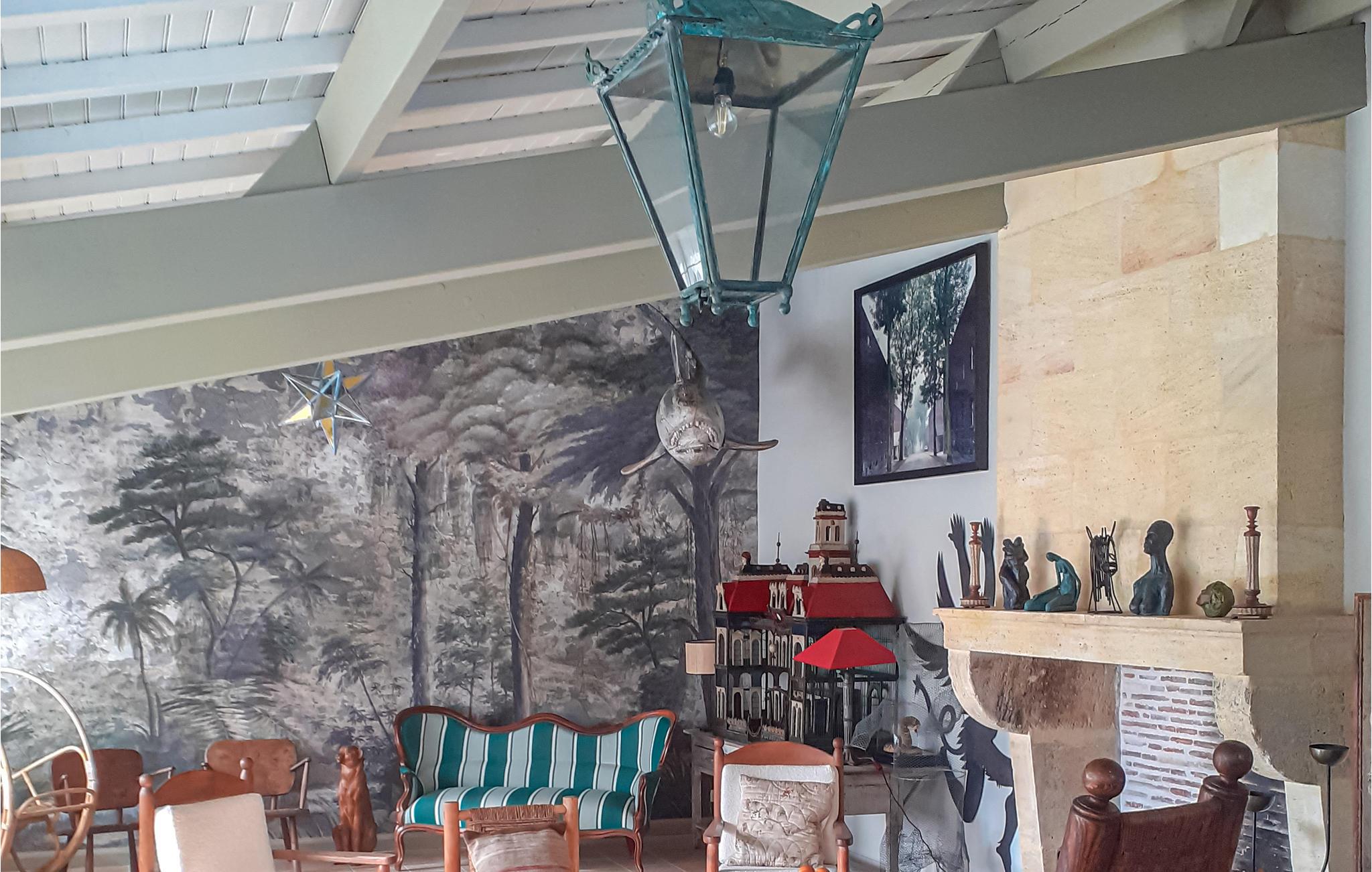 Dette komfortable feriehus byder jer velkommen syd for Bordeaux. Nyd en afslappende ferie i smukke omgivelser med jeres familie. Den åbne stue giver jer gode muligheder for at tilbringe jeres tid i godt selskab, lege, lave mad eller slappe af foran den åbne pejs. Den meget store have, som I deler med en anden bolig, indbyder til mange timers svømning i swimmingpoolen i de varme måneder. Slap af på liggestolene eller hvil i skyggen af træerne. De mere aktive blandt jer kan svinge ketsjerne og slå boldene frem og tilbage på jeres private tennisbane.