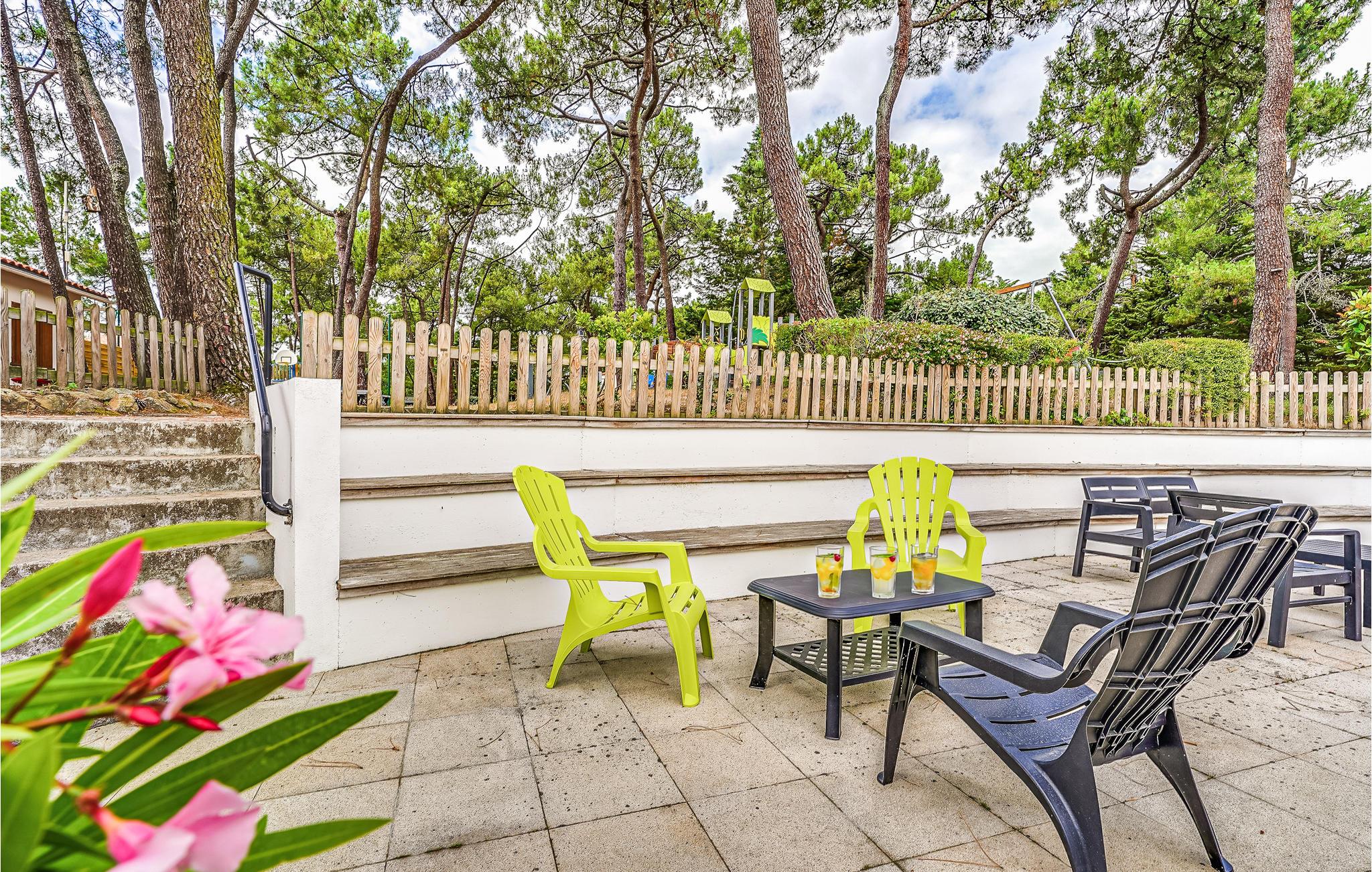 Denne nydelige feriepark er harmonisk indlejret i et malerisk og roligt kystlandskab, præget af fyrretræer og brede, gyldne sandstrande. Ferieparken er perfekt for mindre familier eller vennegrupper, der ønsker at tilbringe en solrig ferie med et væld af bade- og underholdningsmuligheder lige uden for døren. Her kan I blandt andet lege med jeres børn på legepladsen, lære jeres naboer at kende over et spil petanque, tage et slag bordtennis eller et spil udendørsskak. Derudover ligger der en smuk golfbane i nærheden, og den berømte forlystelsespark Puy du Fou ligger en times kørsel væk. En ganske kort gåtur tager jer til stranden, hvor I kan tilbringe skønne, afslappede badedage og flyve med drager. Mange strande i området er under opsyn af livreddere, så I ubekymret kan lade børnene bade og lege i sandet.