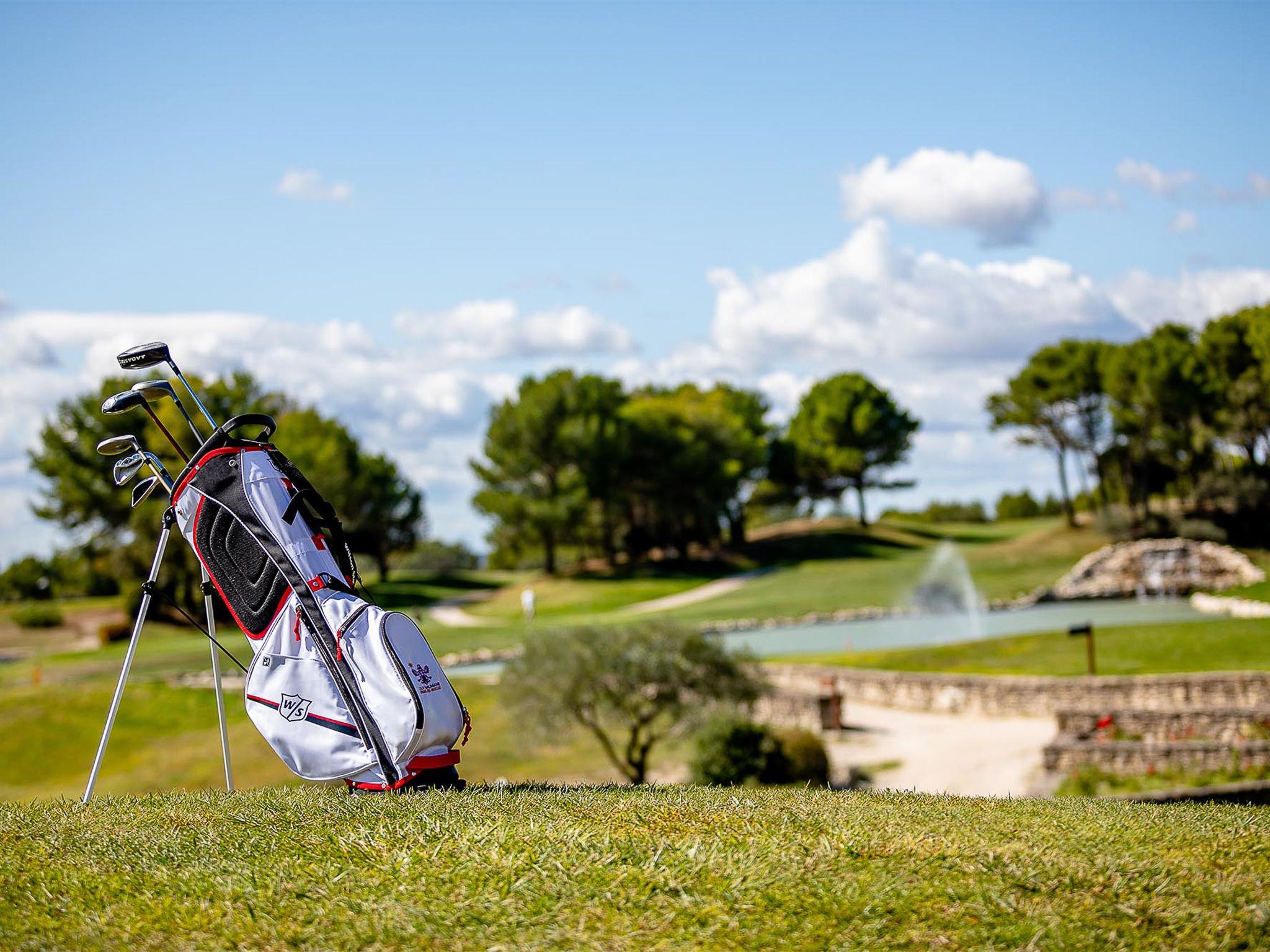 Saumane 3 km from L'Isle-sur-la-Sorgue: Large, beautiful, cosy resort "Provence Country Club". 131 apartments in the residence. In the hamlet Saumane 3 km from the centre of L'Isle-sur-la-Sorgue, 18 km from the centre of Carpentras, 32 km from the centre of Avignon, in the countryside, on the golf course. For shared use: property with lawn and trees, natural garden, meadow, swimming pool (20 x 10 m, seasonal availability: 16.May. - 10.Oct.). Unconventional pool shape. Children's pool, tennis, terrace. In the complex: reception, WiFi, fitness room, washing machine, tumble dryer (for shared use, extra). Bread roll service. Parking on the premises. Supermarket 5 km. Golf course (18 hole) 50 m. Please note: the photograph shows a typical example. The holiday properties may differ in living space, floorplan, equipment and furnishing. Wi-fi only at the reception.