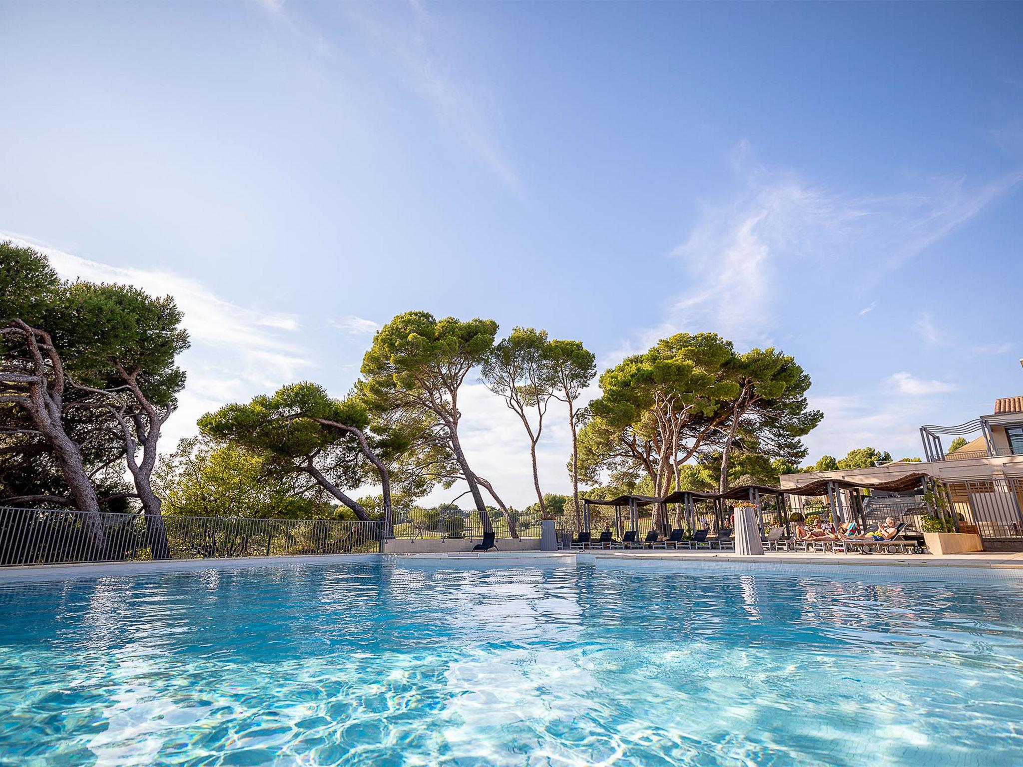 Saumane 3 km from L'Isle-sur-la-Sorgue: Large, beautiful, cosy resort "Provence Country Club". 131 apartments in the residence. In the hamlet Saumane 3 km from the centre of L'Isle-sur-la-Sorgue, 18 km from the centre of Carpentras, 32 km from the centre of Avignon, in the countryside, on the golf course. For shared use: property with lawn and trees, natural garden, meadow, swimming pool (20 x 10 m, seasonal availability: 16.May. - 10.Oct.). Unconventional pool shape. Children's pool, tennis, terrace. In the complex: reception, WiFi, fitness room, washing machine, tumble dryer (for shared use, extra). Bread roll service. Parking on the premises. Supermarket 5 km. Golf course (18 hole) 50 m. Please note: the photograph shows a typical example. The holiday properties may differ in living space, floorplan, equipment and furnishing. Wi-fi only at the reception.